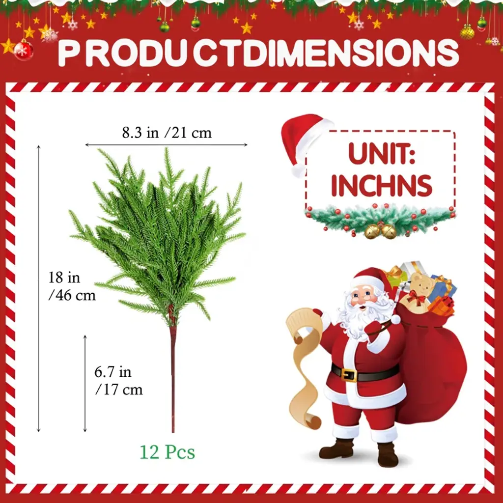 12 Pcs Artificial Norfolk Pine Branches Plants Decor