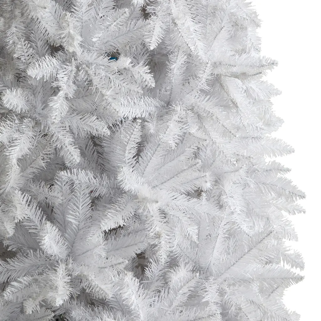 Are you dreaming of a white Christmas? Fulfill all your dreams with this white artificial Christmas tree. Inspired by nature, this tree has a slim silhouette that mimics its real counterparts' natural foliage and texture. With 3235 bendable branches, you can easily display all your favorite ornaments. Standing 12' from a metal stand, curate in any area. Perfect for a family room, living room, or home office.