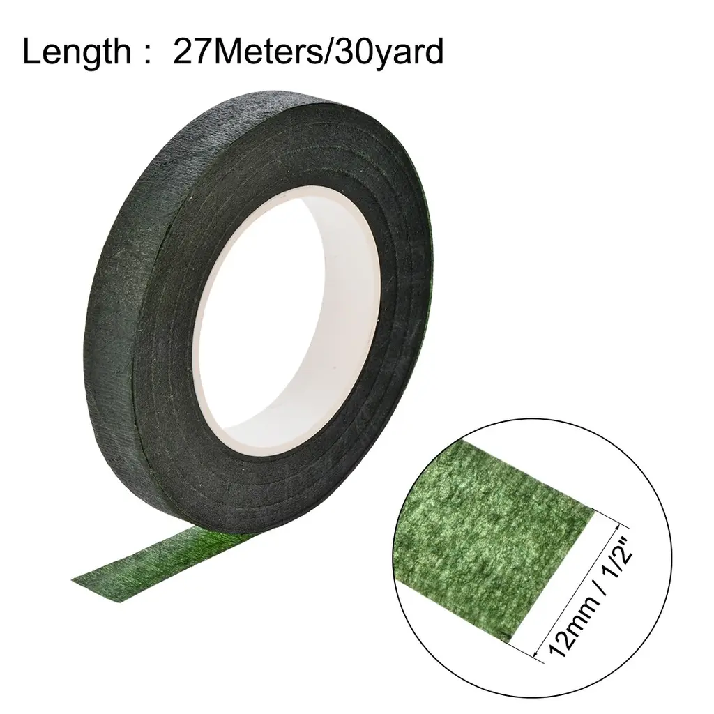 Package Content--- 1 Roll 1/2-inch Wide 30Yard Dark Green Floral Tape Flower Adhesives Floral KitsSticky tape--- It can be stretched moderately during use to increase its adhesion, and it can adhere well to the flower stem, but avoiding excessive stretching will lead to tearingGood quality stem tape--- Our tape is made of paper and has a smooth surface and a good texture to give your flowers a natural and beautiful look.Widely use--- Floral tape is suitable for flower arrangements, wedding, artificial flowers, floral decorations and other crafts, as well as home and garden decoration, etc, it will bring you a green atmosphereNotice--- there is a layer of wax covered on the floral tape surface to prevent oxidation, please slightly stretch it to activate its before use.Feature:Color : Dark GreenWidth : 12mm / 1/2"Length : 30yard/rollMaterial: Corrugated PaperPackage Content :1 Roll x Floral TapeDescription:1.Sticky tape: It can be stretched moderately during use to increase its adhesion, and it can adhere well to the flower stem, but avoiding excessive stretching will lead to tearing2.Convenient use: These floral tapes have a self-adhesive , which is flexible and stretchable, strong enough to be easily torn and wrapped3.Widely use: Floral tape is suitable for flower arrangements, wedding, artificial flowers, , floral decorations and other crafts, as well as home and garden decoration, etc, it will bring you a green atmosphere