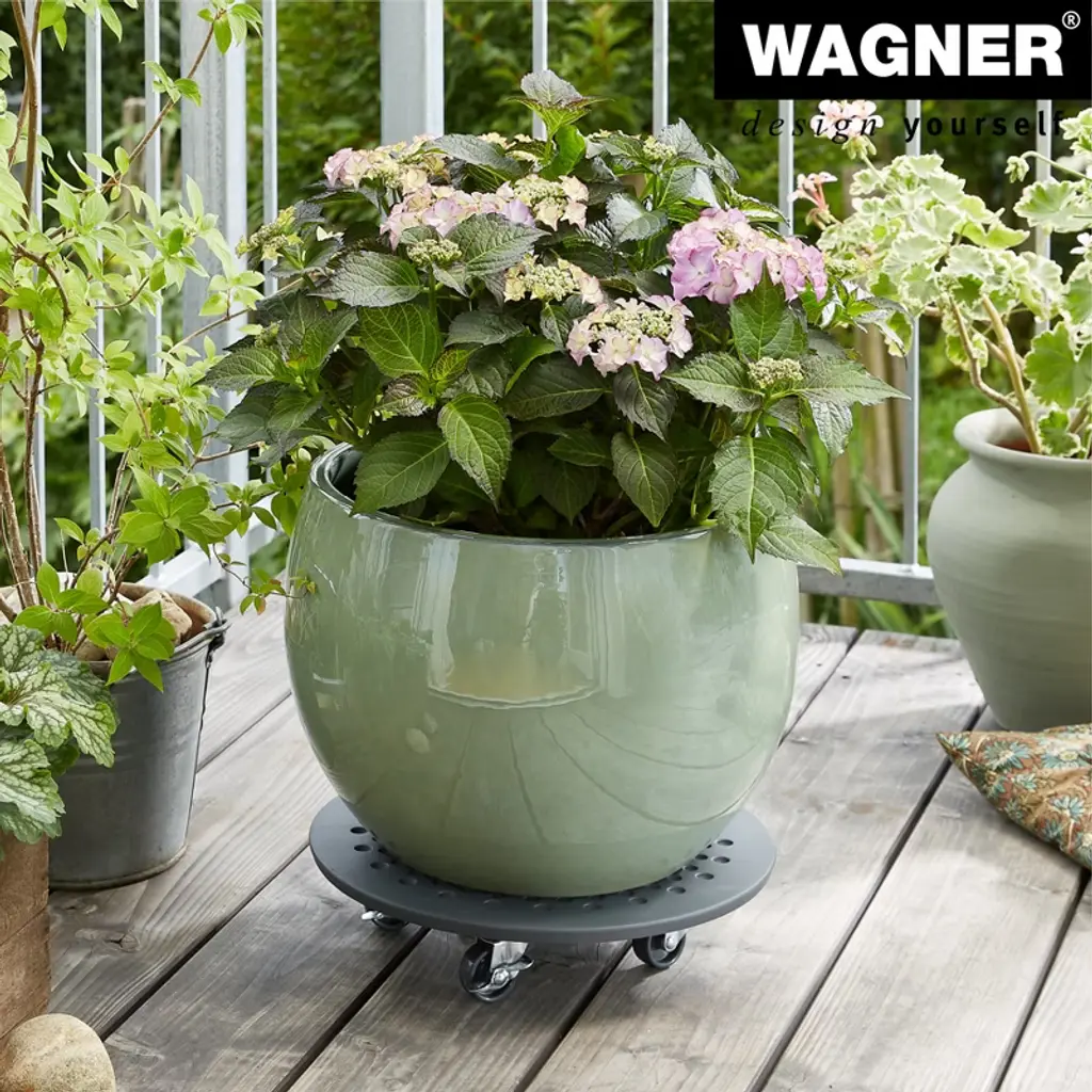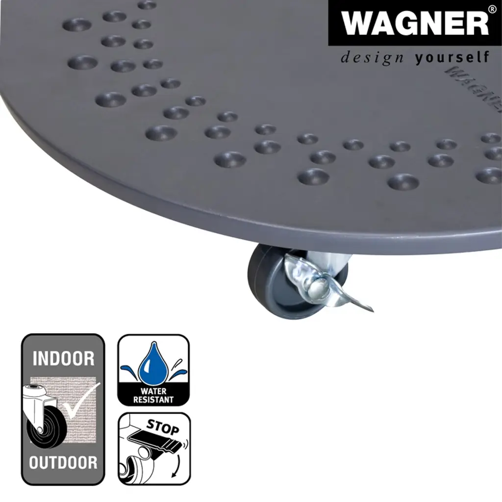 Upgrade your plant display with the Wagner Round Stone Plant Caddy, featuring a matte charcoal gray finish for a sleek, modern look. Designed for both indoor and outdoor use, this water-resistant caddy provides a sturdy and stylish base for your plants. Its twin-wheel casters glide effortlessly over carpets and hard floors without scratching or tipping, and locking brakes ensure secure positioning. Engineered by Wagner, a trusted German brand with over 40 years of experience, this heavy-duty plant caddy supports up to 220 lbs. with superior durability and stability.