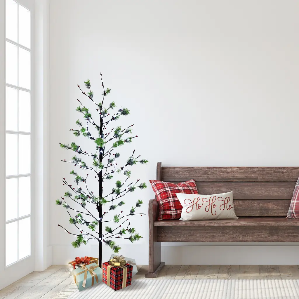 Show your true colors during Christmas with this flocked artificial Christmas tree. Inspired by nature, this robust silhouette mimics the real natural foliage and texture found in their European counterparts with snow in the easy-to-bend branches. Arriving pre-strung with 20 LED lights, illuminate your space with disco ball like lights, that bring a colorful addition to the holidays. Standing 3' from a decorative planter, feel free to add in any compact area in need of Christmas cheer. This is a favorite among kids that love bright colors.