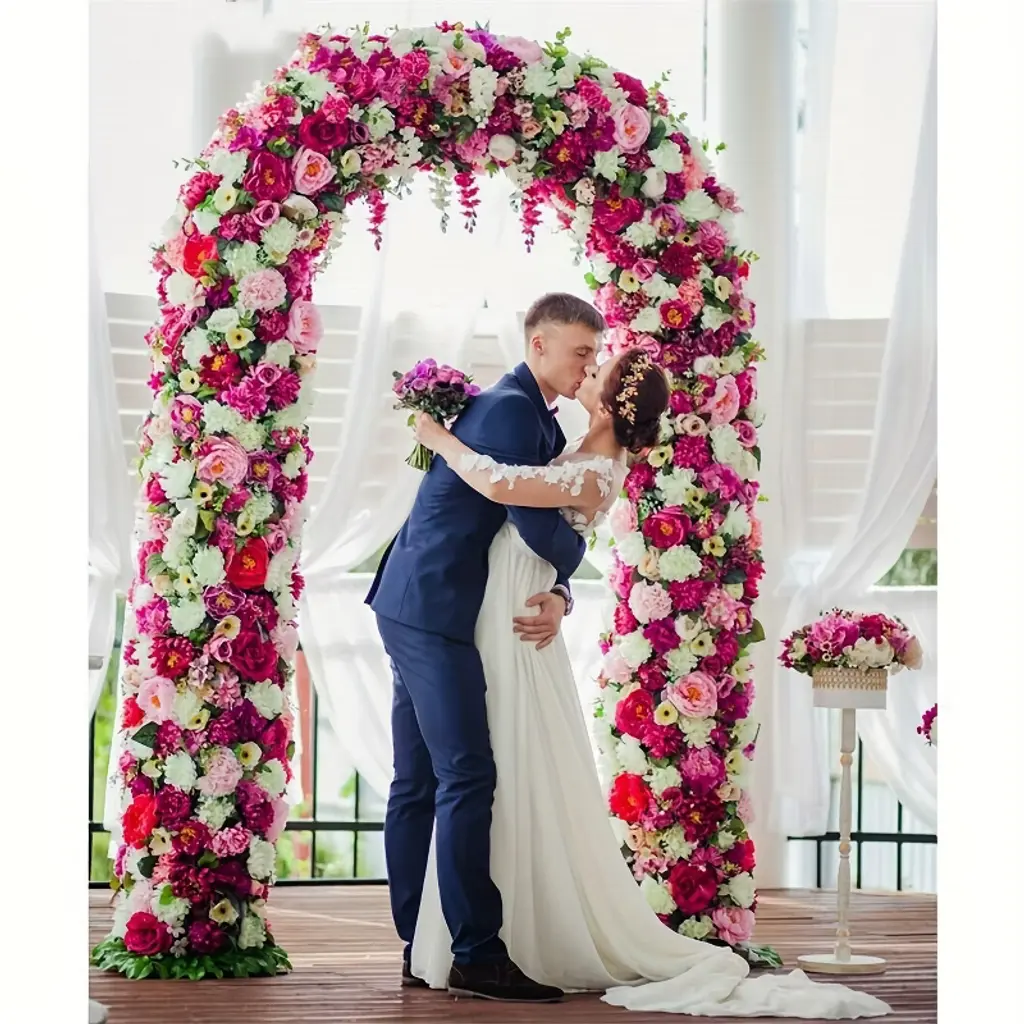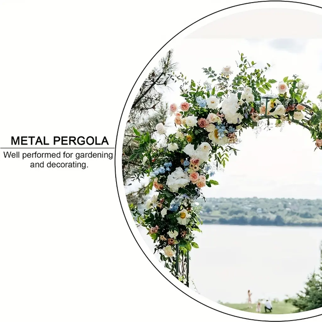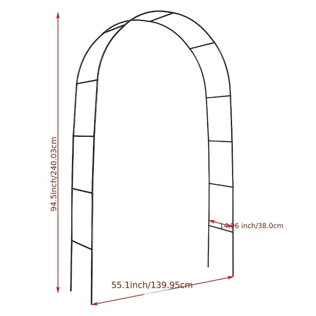 Introducing our stunning metal archway, a weather-resistant garden decoration that enhances any landscape with its elegant design. Perfect for weddings, quinceaneras, and sweet 16 parties, this lightweight and easy-to-assemble arch stands at 57" W x 94" H. Decorate with climbing plants, vines, or night lighting for a breathtaking display. Crafted from sturdy metal, it supports your greenery and creates a memorable focal point in your garden.