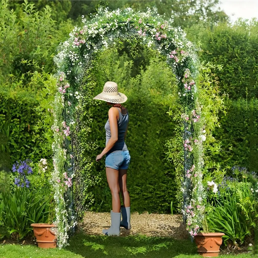 2.4m Tall Freestanding Arch Wedding Garden Archway Solid Black Metal Climbing Plants Support Frame Trellis Ground For Outdoor Patio