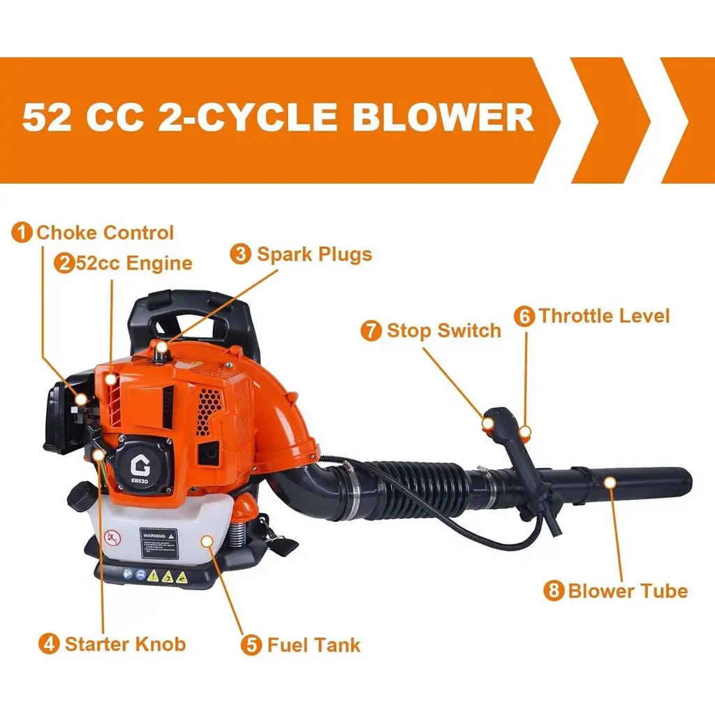 2-Cycle Engine Gas Backpack Leaf Blower With Ergonomic Harness System - 52cc 2.2hp 780cfm 270mph