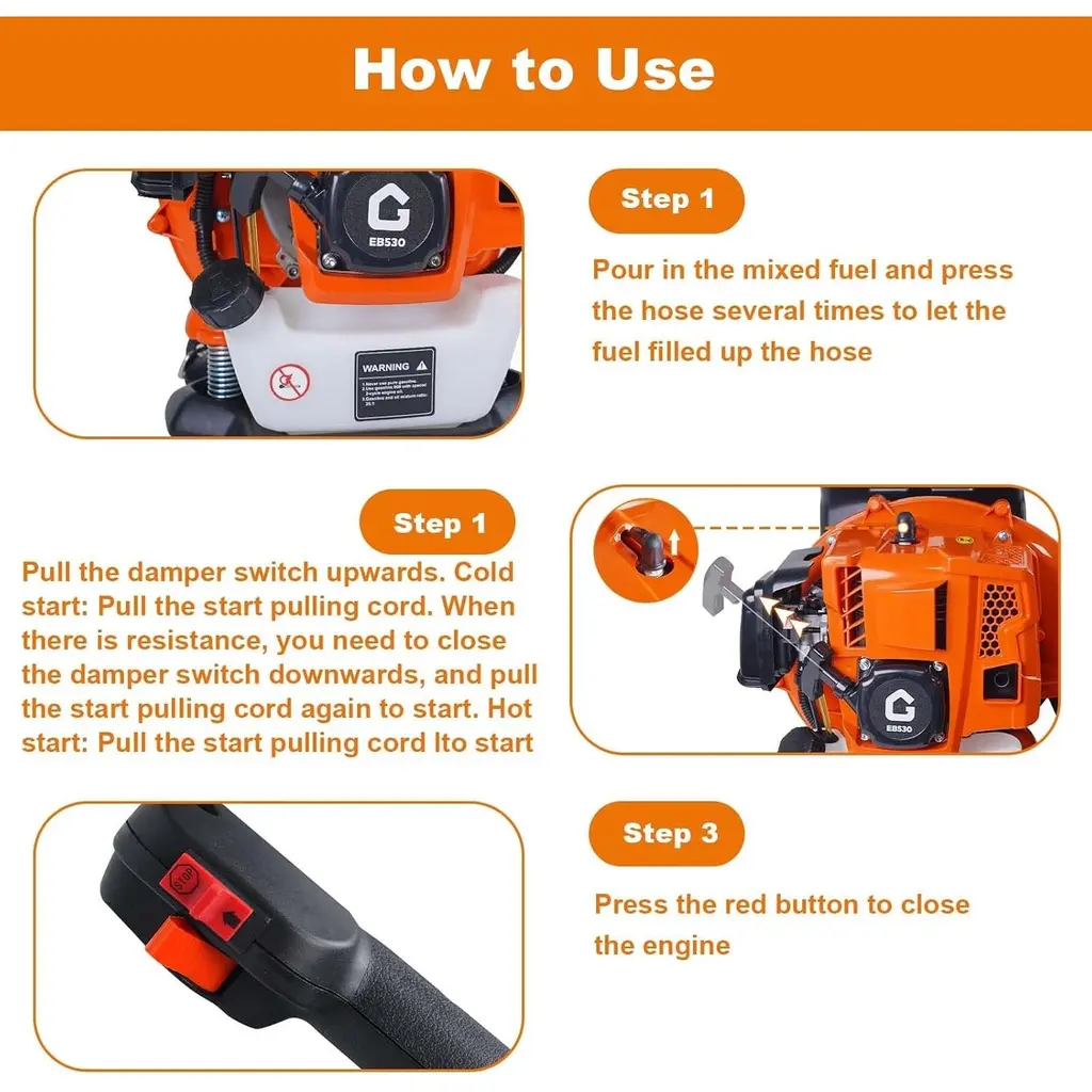 1. Powerful Performance • The 52-cc 2.2-HP Gas Leaf Blower delivers up to 780 CFM airflow and 270 MPH wind speed, ensuring efficient clearing of leaves and debris. • The 66-cc 4.0-HP Gas Leaf Blower offers an impressive 880 CFM airflow and 320 MPH wind speed, providing unmatched power for heavy-duty yard work. 2. Ergonomic Design • Equipped with a comfortable backpack harness system, reducing strain and fatigue during extended use, allowing you to work longer with ease. 3. Durable Construction • Built with high-quality materials, the 2-Cycle engine ensures reliable and consistent performance, making it ideal for demanding tasks in both residential and commercial settings. 4. Easy to Use • Designed with simple controls and a lightweight frame, this Gas Leaf Blower is easy to maneuver, enabling quick and efficient leaf clearing. 5. Versatile Applications • Fit for both residential and commercial use, the powerful airflow and ergonomic harness system make yard maintenance faster, easier, and more effective.