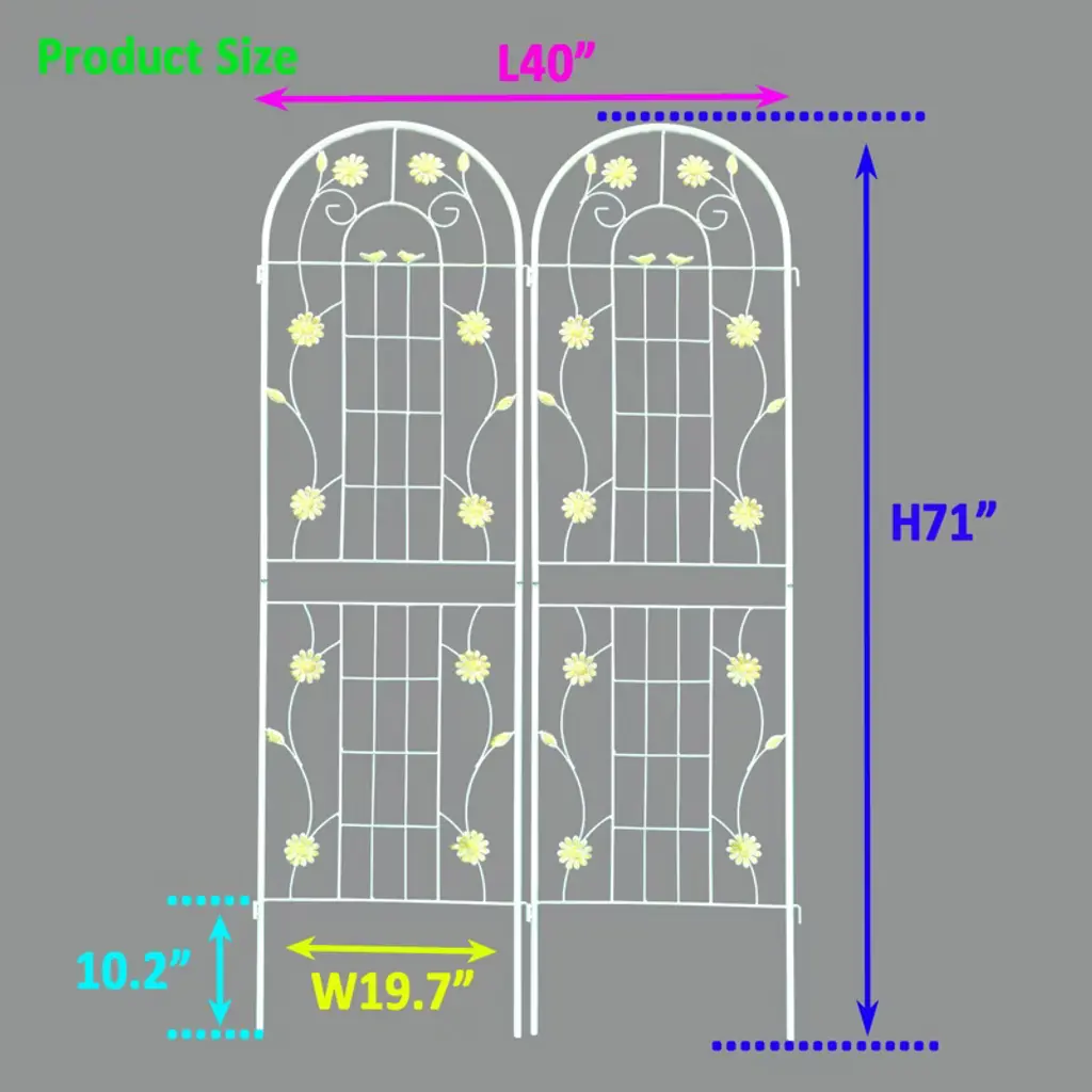 Discover the perfect blend of form and function with our 2-Pack Metal Garden Trellis, each measuring 71" x 19.7". These rustproof trellises are designed to provide sturdy support for climbing plants and outdoor flowers, allowing your garden to reach new heights of beauty. The elegant design and durable construction make them a versatile addition to any garden, whether you're creating a lush vertical garden or adding structure to your flower beds. With their easy-to-install design and weather-resistant finish, these trellises are a must-have for any gardening enthusiast looking to elevate their outdoor space.