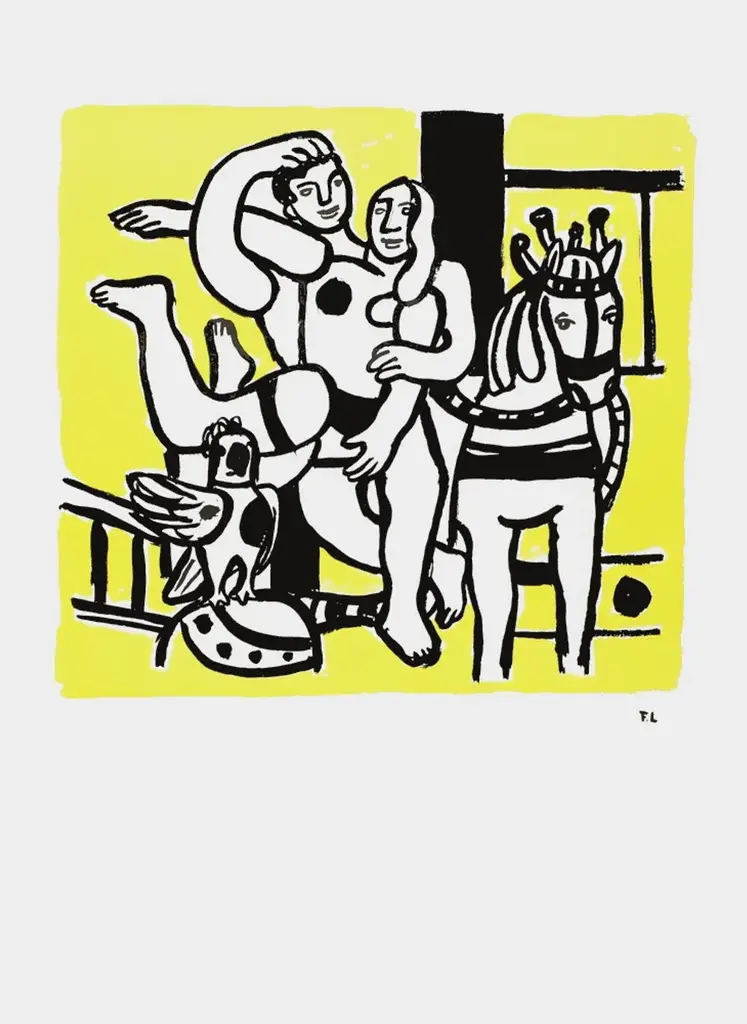 After Fernand LÉGER LES ACROBATES lithograph on white Bristol board signed in the plate 29.9 x 22.0 in illustration : 17.3 x 18.1 in in mint condition note(s) : high quality open edition authorized by Leger estate
