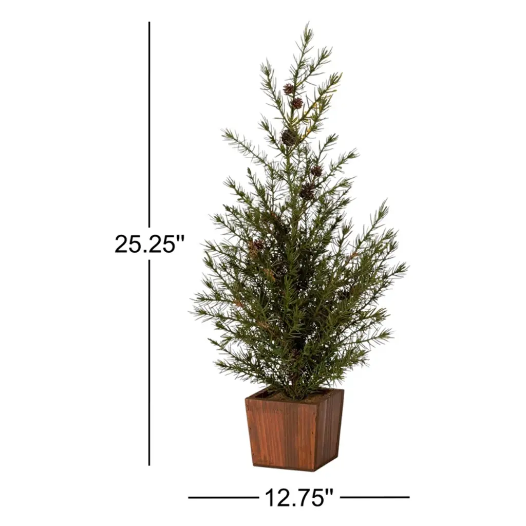 25.25" Artificial Christmas Potted Cedar Pinecone Tree, Green
