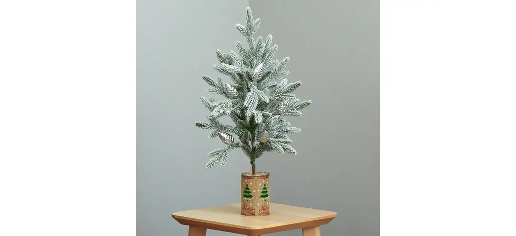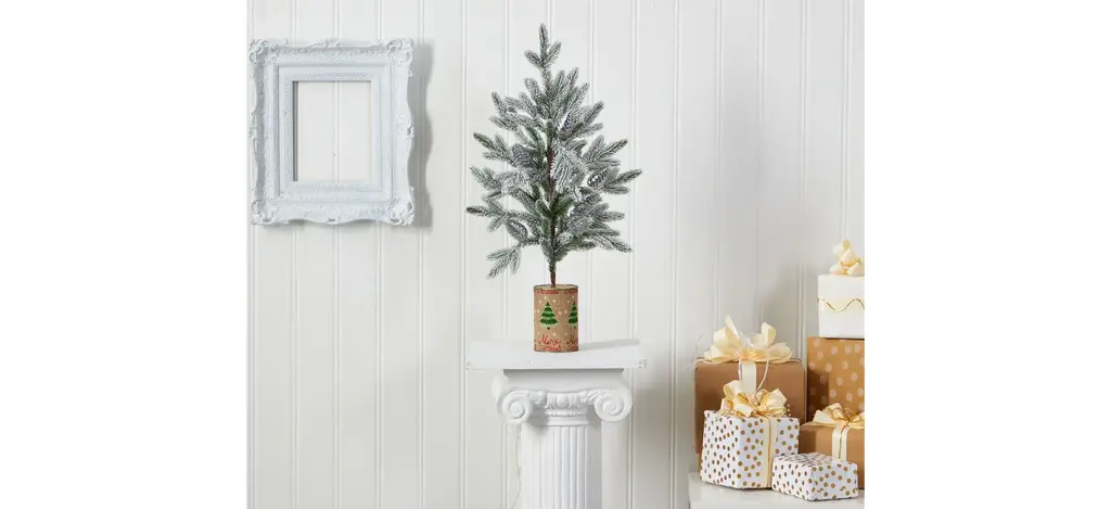 Evoke hints of the season no matter the space restriction with the help of this flocked artificial Christmas tree. Easy to set up and entirely maintenance-free, this timid little faux tree features a naturally sparse-like design with slender bendable branches for easy decorating and finished with a frosting of faux snow to evoke a winter-inspired setting. Standing just over 28' tall and carefully stabilized in a decorative planter, this flocked artificial Christmas tree would undoubtedly make a stunning addition to any winter decor scheme.