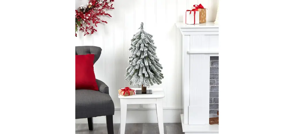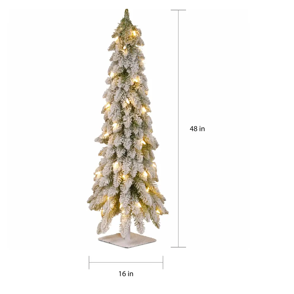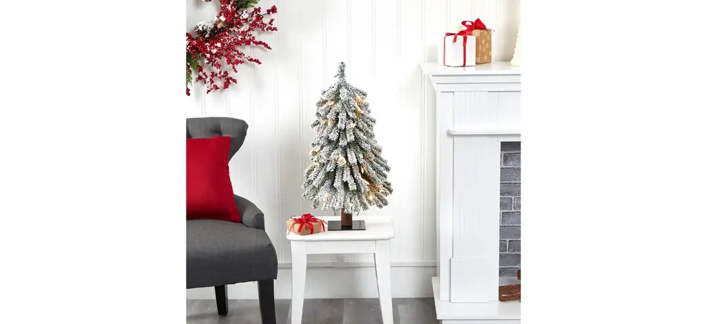 Set up the ultimate Christmas scene even in a limited space environment with the help of this flocked artificial Christmas tree. Completely maintenance-free, this winter-inspired artificial Christmas tree boasts a slim and slender silhouette made up of 111 easy-to-bend branches to showcase all your favorite holiday ornaments and comes beautifully flocked in a winter coating of faux snow to evoke the impression of freshly fallen snow. Arriving pre-strung with 35 clear LED lights to eliminate unsightly tangles and carefully stabilized on a natural trunk and metal stand, this snowy 2' artificial Christmas tree will undoubtedly transform your holiday decor, year after year.