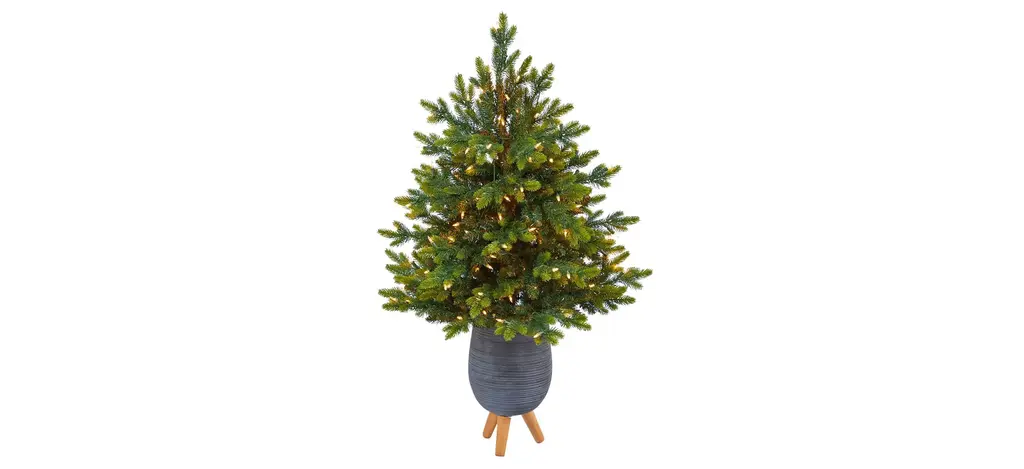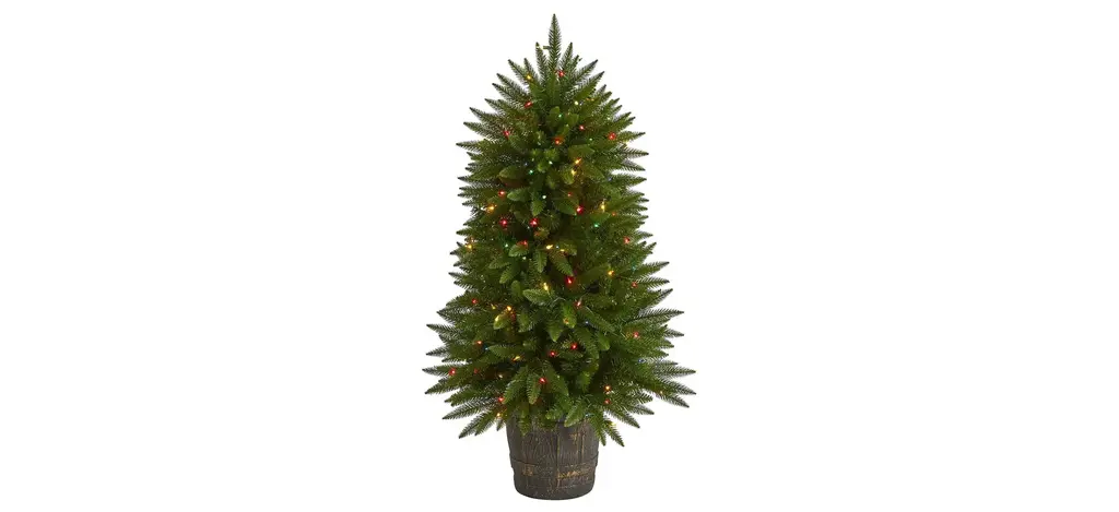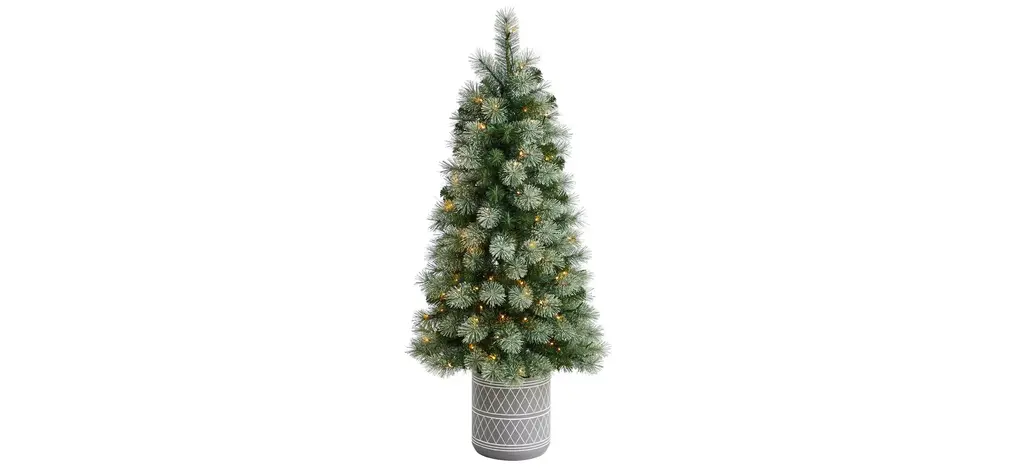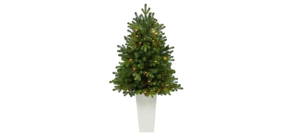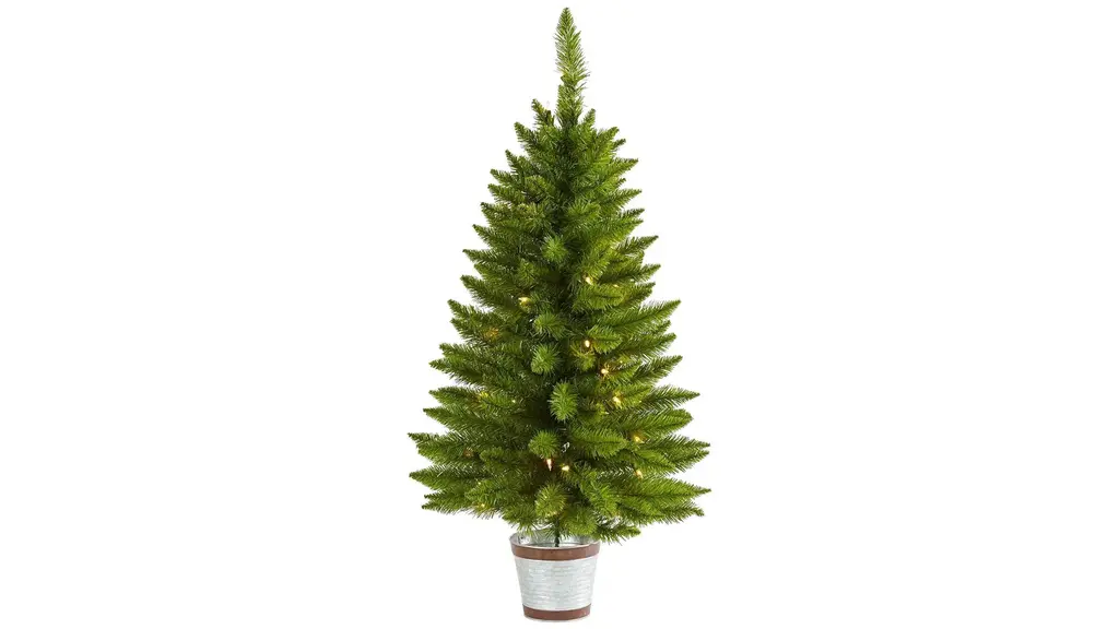 Create a miniature Christmas scene even in the smallest spaces with the help of this artificial Christmas tree. Easy and effortless, this space-saving artificial Christmas tree boasts a slim silhouette of seasonal foliage, made up of 51 easy-to-bend branch tips, perfect for accenting with all your favorite holiday ornaments. Arriving pre-strung with 35 clear lights to eliminate unsightly tangles and carefully stabilized in a decorative planter, this versatile 2' tall artificial Christmas tree will evoke the holiday spirit wherever displayed.