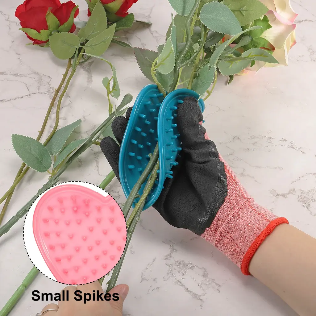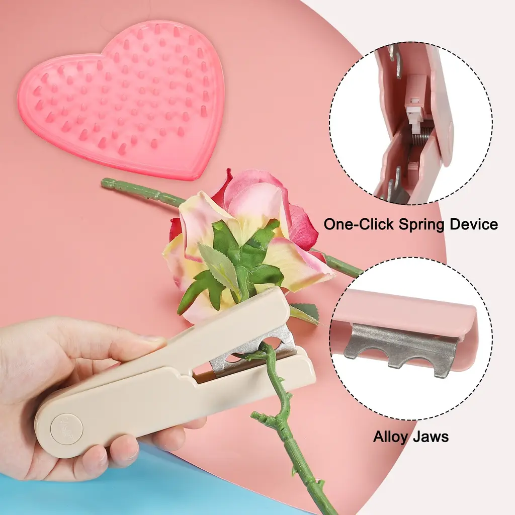 This thorn removal tool is great for use in the florist shop and for various gardening tasks. From pruning rose bushes to preparing bouquets, it simplifies the entire process by quickly and easily removing unwanted thorns and leaves.SpecificationColor: PinkMaterial: Plastic, MetalRubber Stripper Size: 12x12cm / 4.7x4.7inch(L*W)Steel Stripper Size: 14x3X2.8cm / 5.5x1.18x1.1inch(L*W*H)Steel Stripper Open Size: 12cm / 4.7inchPacking List: 1pcs x Plastic Thorn Removal Tool, 1pcs x Metal Thorn Removal PliersAdvantage1. The thorn remover tool is made of soft plastic, which provides an excellent hand feel and a smooth and comfortable grip. The plastic is thick and durable, and the surface is smooth and easy to clean.2. Metal thorn removers can easily remove thorns and leaves from stems. Rose thorn removers are equipped with an automatic clasp mechanism, which allows for easy opening and closing, ensuring a clean and precise cut, eliminating thorns. InstructionPlace the rose stem in the middle of a plastic rose stripper or metal thorn remover and move it from top to bottom to easily remove thorns and leaves.NOTE: Avoid applying excessive force or using it on delicate flowers, as this may cause damage to the petals.