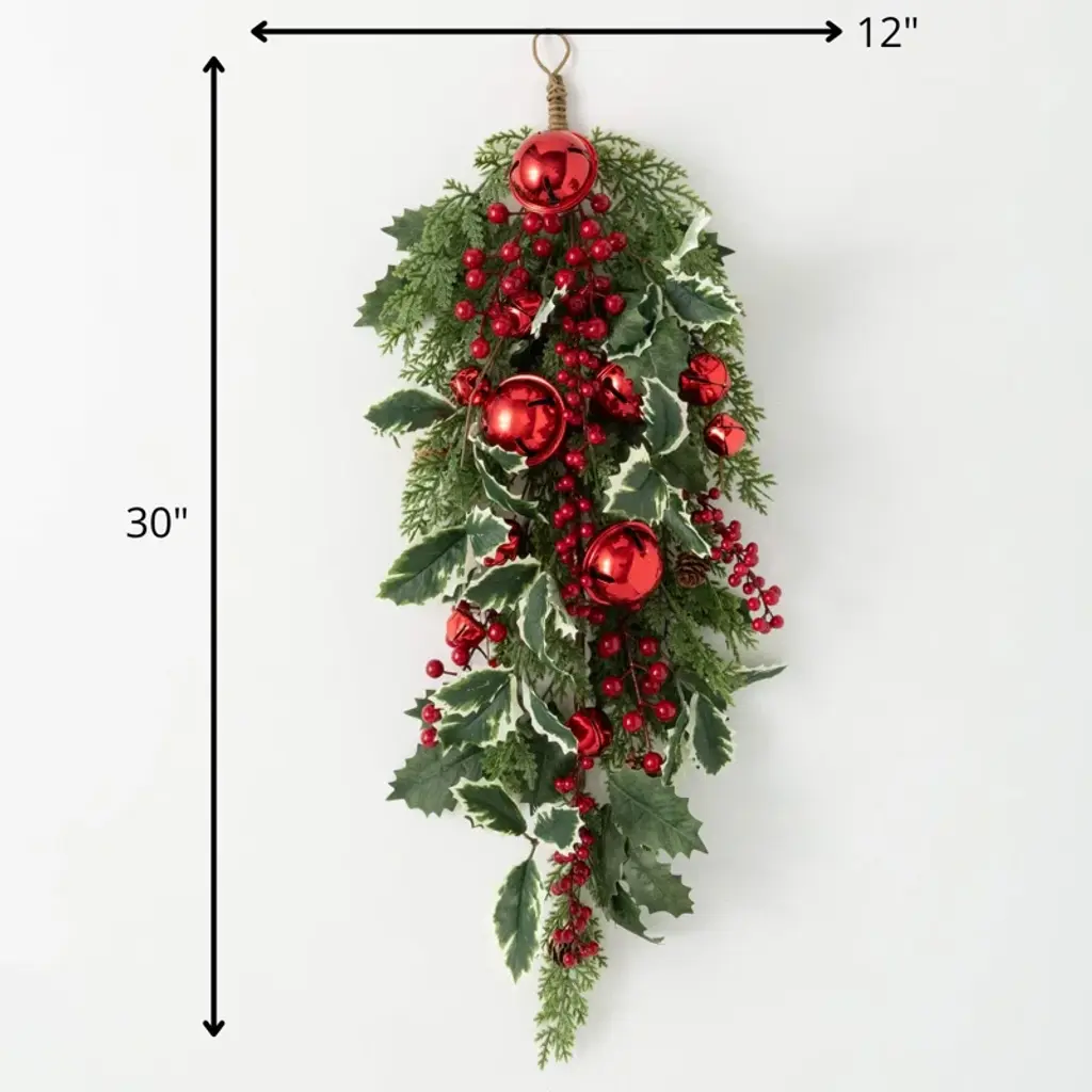 30" Artificial Jingle Bell Holly Pine Swag, Green-Red