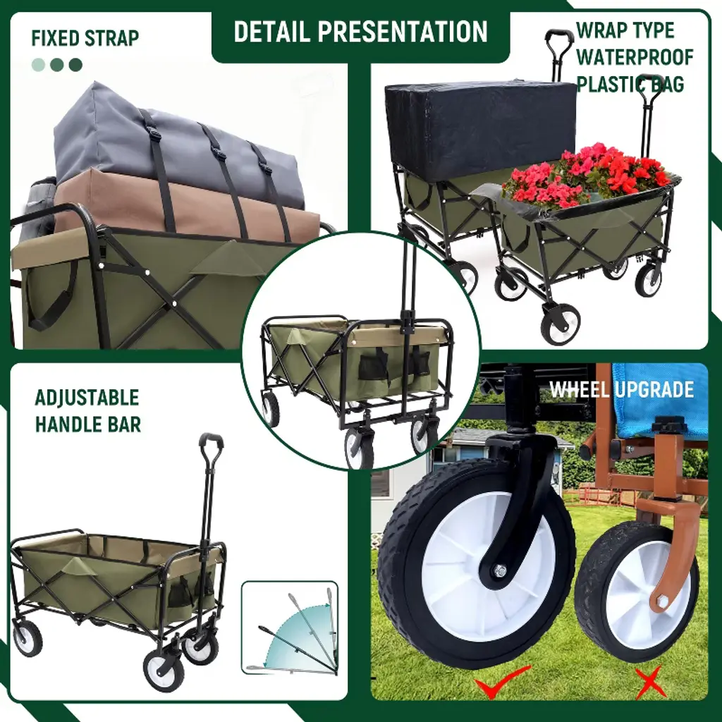 360lbs Collapsible Foldable Wagon Cart With Strapping System ,Beach Wagon Utility Cart Utility Wagon Grocery Cart