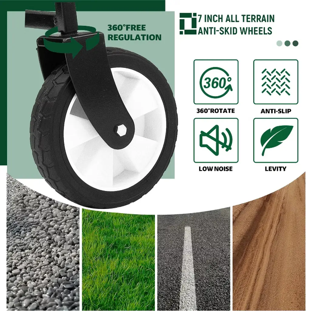 Plastic Liner & Cover Set - 3-Pcs Bundle IncludedThis waterproof set protects your utility cart from stains, scratches, and yard waste. It keeps dirt, debris, and sand contained, ensuring a clean, neat transport. Ideal for gardening, beach trips, or carrying tools and produce, it shields your items from rain, dust, and outdoor elements. Lightweight and easy to store, the set offers quick, simple installation¡ªjust slide the covers over your foldable wagon or wheelbarrow for immediate protectionUnique Strapping System: Our exclusive strapping system allows you to securely tie down taller or longer items, either on top or along the sides of the cart, providing added versatility and stability for your cargo.Stylish Two-Tone Design: Featuring a trendy two-tone color scheme, this wagon not only offers functionality but also adds a touch of modern style, making it a fashionable choice for any outing.Heavy-Duty Frame: Built with a reinforced, thickened frame, this wagon is designed for durability and stability, complete with a rust-resistant powder-coated finish for long-lasting use.All-Terrain 360-Degree Swivel Wheels: Equipped with 7-inch wheels that can rotate 360 degrees, this cart is perfect for navigating various terrains, making it easy to maneuver on any surface.