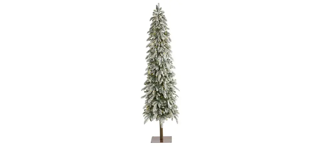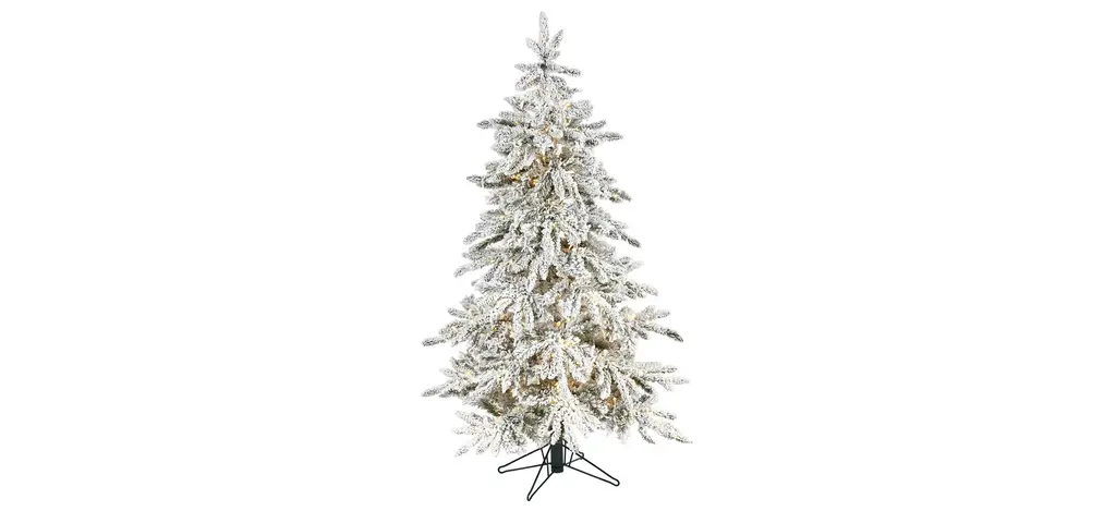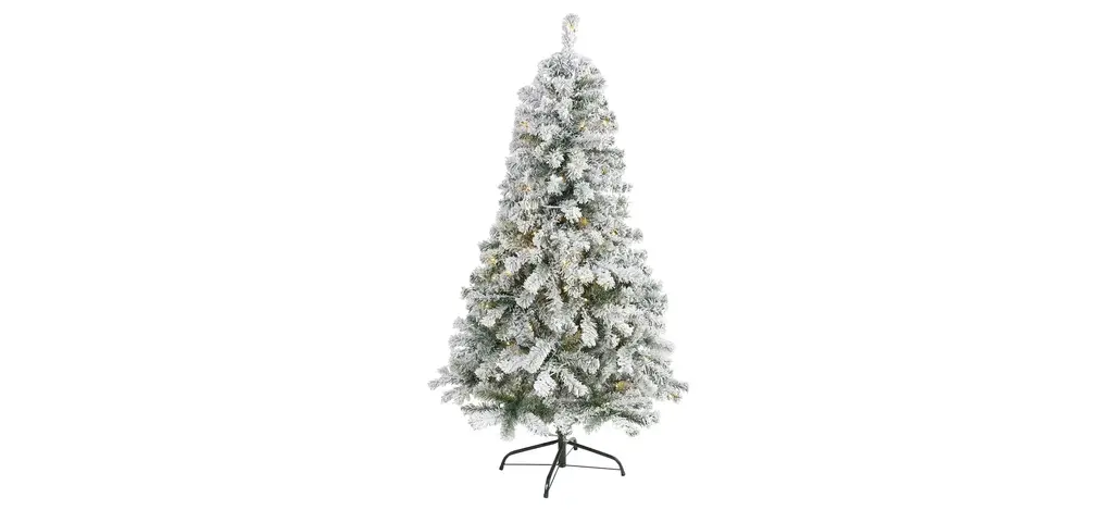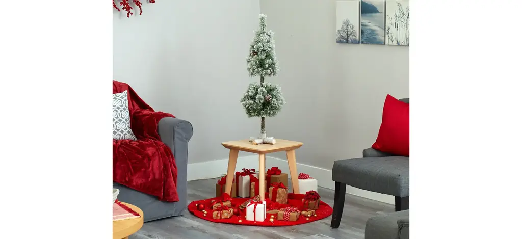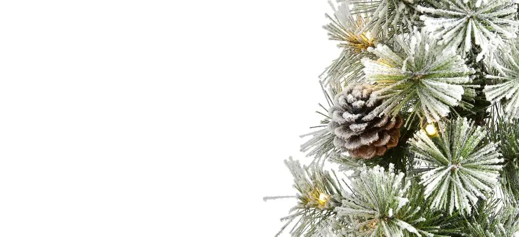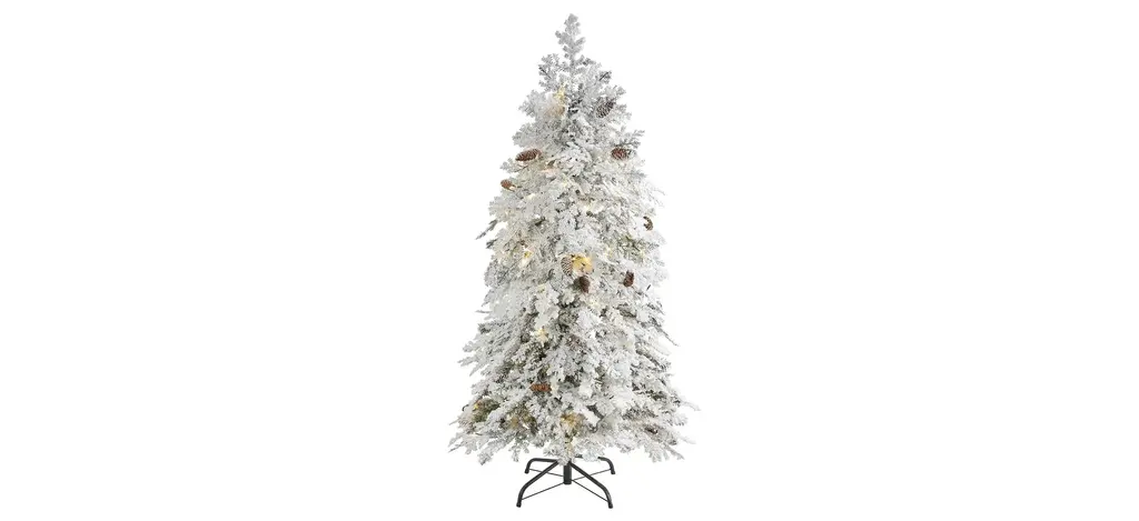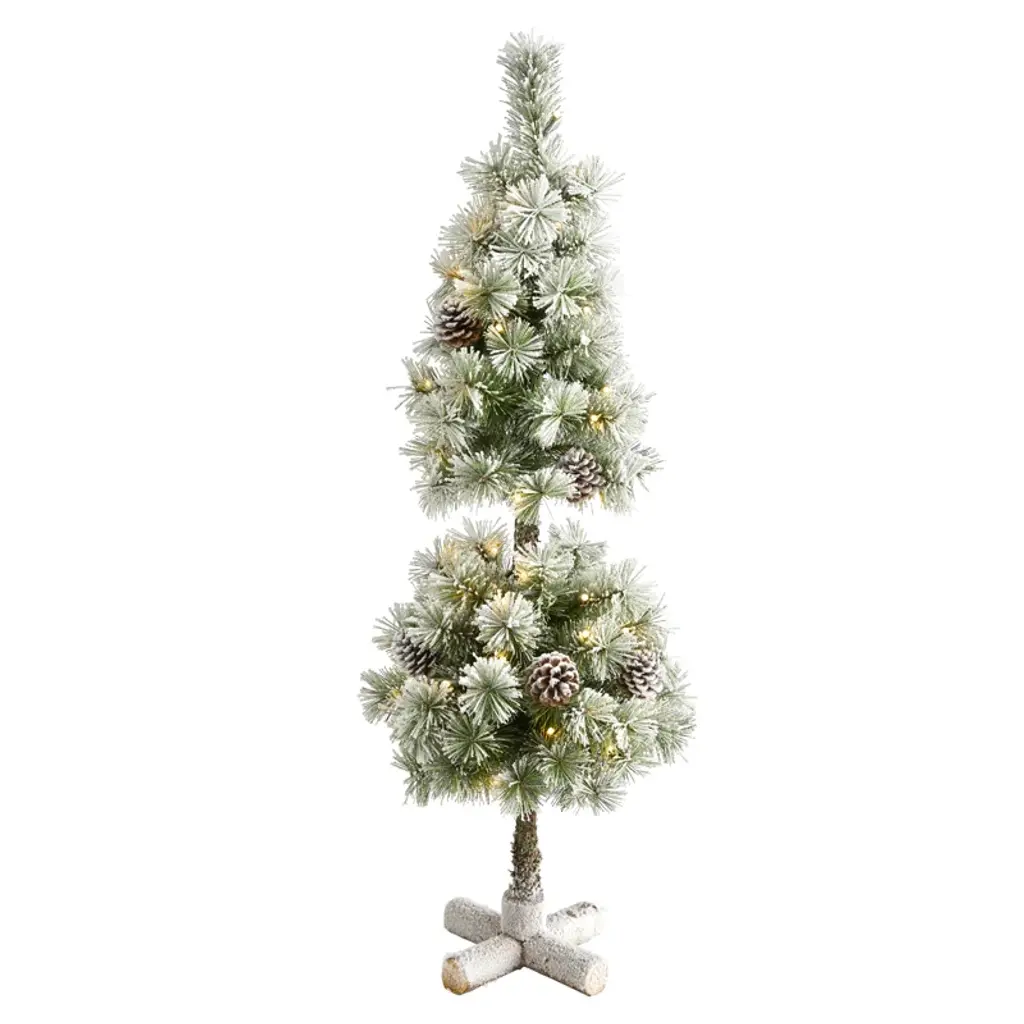 Showcase hints of the season no matter the space restriction with the help of this flocked artificial Christmas tree. Easy to set up and entirely maintenance-free, this miniature faux Christmas tree features a topiary-like design made up of short, bendable branch tips, handsomely accented throughout with miniature faux pinecones and finished with a frosting of faux snow to evoke a winter-inspired setting. Arriving pre-strung with 50 clear LED lights and standing 3' tall carefully stabilized on an accompanying base, this flocked artificial Christmas tree would undoubtedly make a stunning addition to any winter decor scheme.