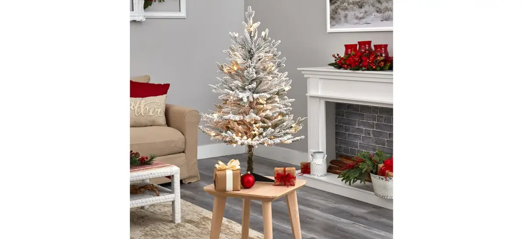 Create your own winter wonderland scene even in a limited space environment with this flocked artificial Christmas tree. Easy and effortless, this winter-inspired artificial Christmas tree boasts a traditional silhouette of realistic looking evergreens made up of 481 easy-to-bend branches for showcasing your own personalized ornaments - all fully flocked with faux snow to create a picturesque Christmas. Arriving pre-strung with 200 clear LED lights to eliminate tangles and stabilized on a metal stand, this flocked 3ft. tall artificial Christmas tree will undoubtedly transform any tight space into a joyous holiday setting for years to come. Artificial Christmas Trees are manufactured using synthetic materials, such as polyester material or plastic, and are well designed and constructed to be life-like in appearance. This item will need to be re-shaped when removed from the secure box to allow it to reach its fullest size.