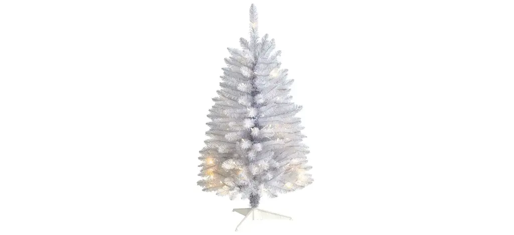 Create a picture-perfect Christmas setting this year with the help of this artificial Christmas tree. Easy to set-up and entirely maintenance-free, this sparse-by-design artificial Christmas tree boasts tiers of realistic looking foliage made up of 142 easy-to-bend branches for showcasing your own personalized ornaments and favorite holiday accents. Arriving pre-strung with 50 clear LED lights to eliminate tangles and carefully stabilized on a metal stand, this impressive 3ft. tall artificial Christmas tree will undoubtedly transform any home or office into a joyous holiday setting for years to come. Artificial Christmas Trees are manufactured using synthetic materials, such as polyester material or plastic, and are well designed and constructed to be life-like in appearance. This item will need to be re-shaped when removed from the secure box to allow it to reach its fullest size.