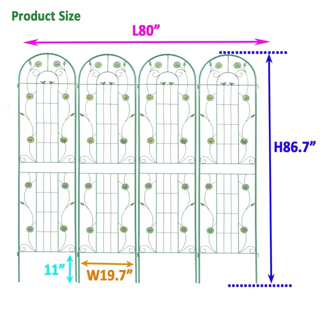 4 Pack Metal Garden Trellis 86.7" X 19.7" Rustproof Trellis For Climbing Plants Outdoor Flower Support Green