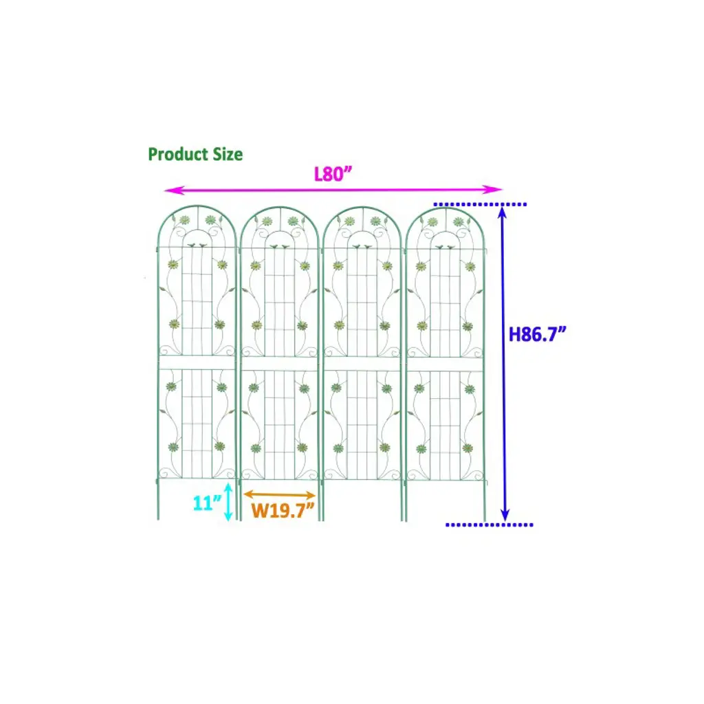 4 Pack Metal Garden Trellis 86.7" X 19.7" Rustproof Trellis For Climbing Plants Outdoor Flower Support Green