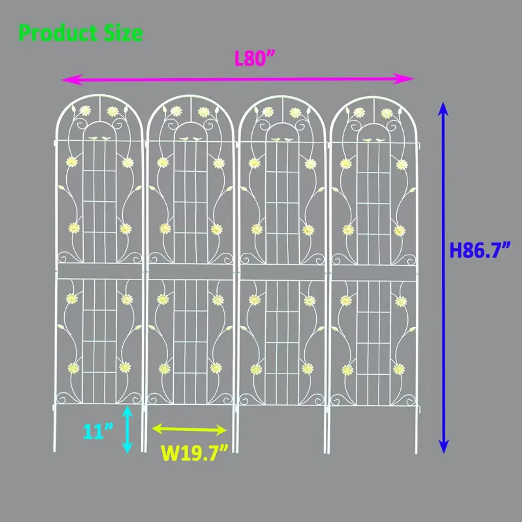4 Pack Metal Garden Trellis 86.7" X 19.7" Trellis For Climbing Plants Outdoor Flower Support Cream White