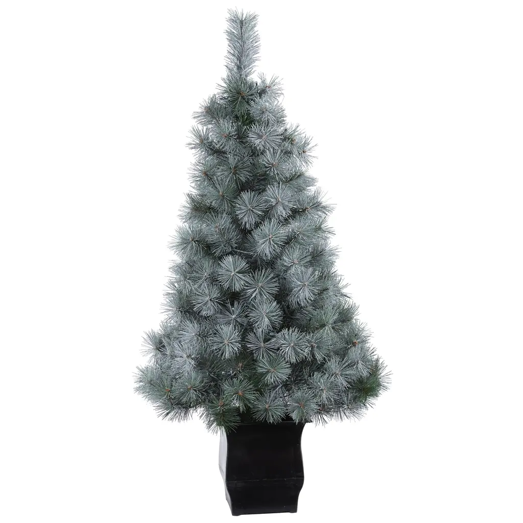 Create the ultimate winter wonderland scene in your home or office with the help of this flocked artificial Christmas tree! Completely maintenance-free, this winter-inspired fake Christmas tree boasts an array of soft looking pine foliage, all beautifully flocked with a snow-like effect throughout its bendable branches that look incredibly lifelike. Arriving pre-strung with 150 LED lights and carefully stabilized in a decorative planter, this versatile 4' flocked artificial Christmas tree will not only make holiday decorating a breeze but ensure your home is always looking picture-perfect throughout the holiday season.