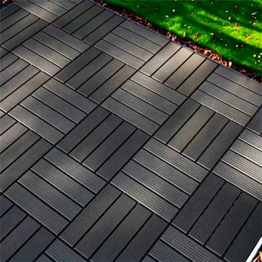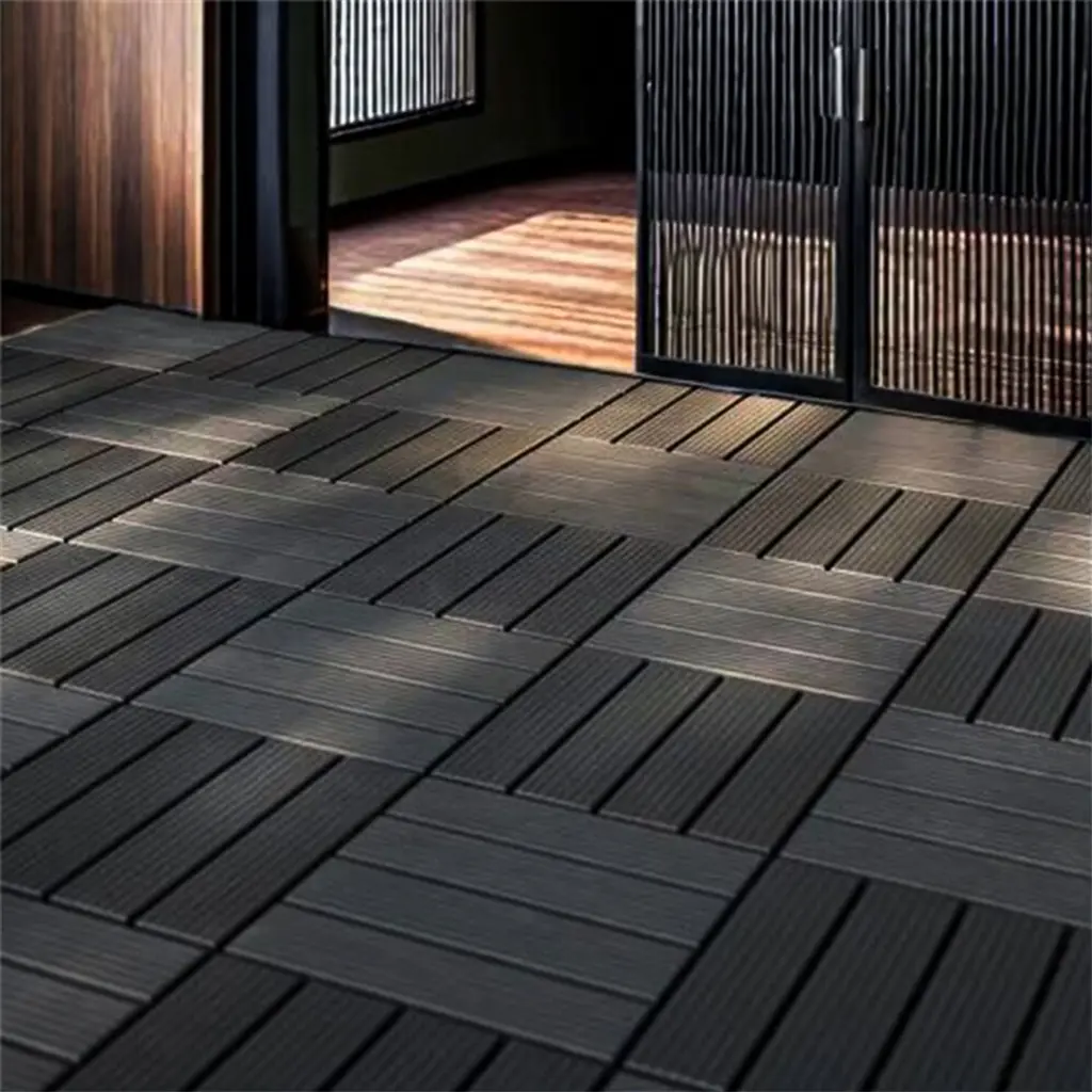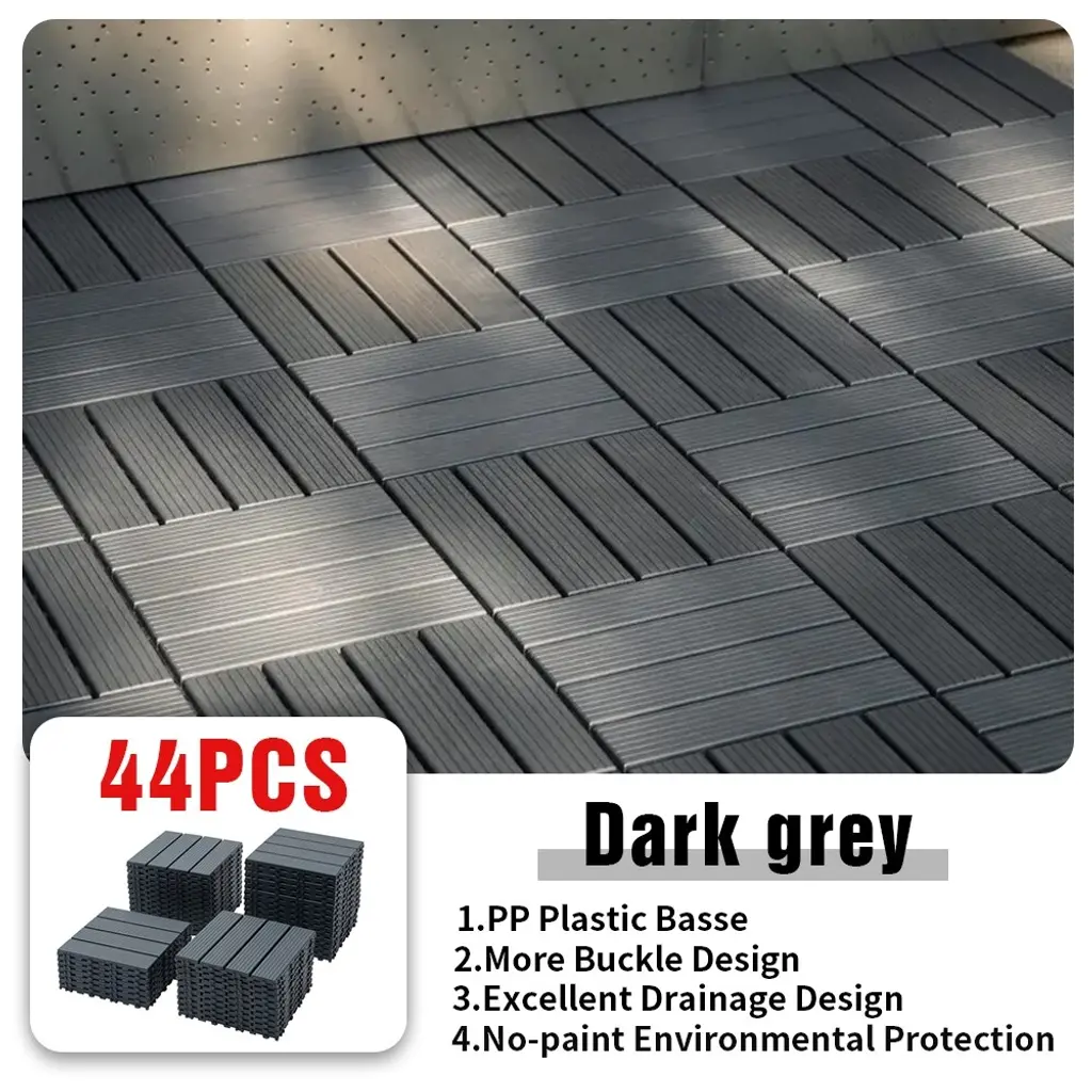 44-Pack Plastic Interlocking Deck Tiles For Outdoor And Indoor Use With Drainage System - Black