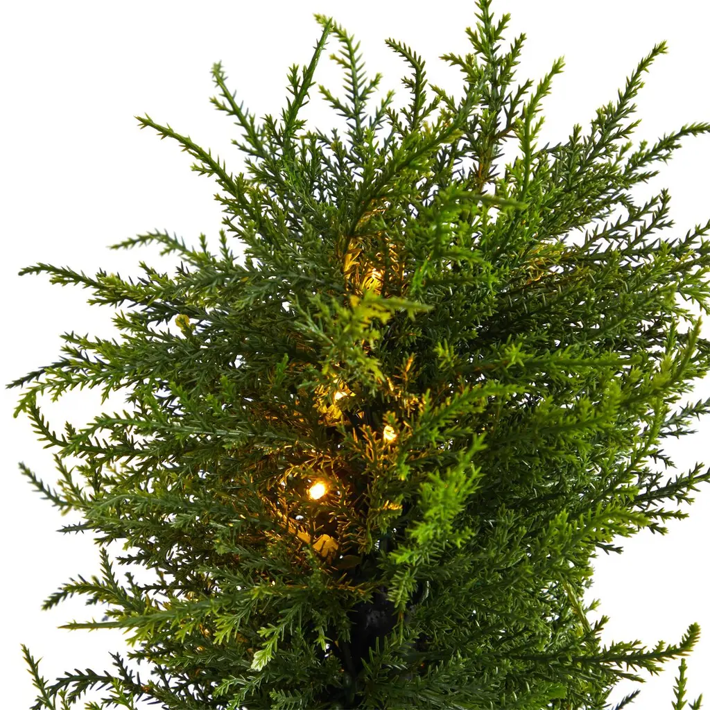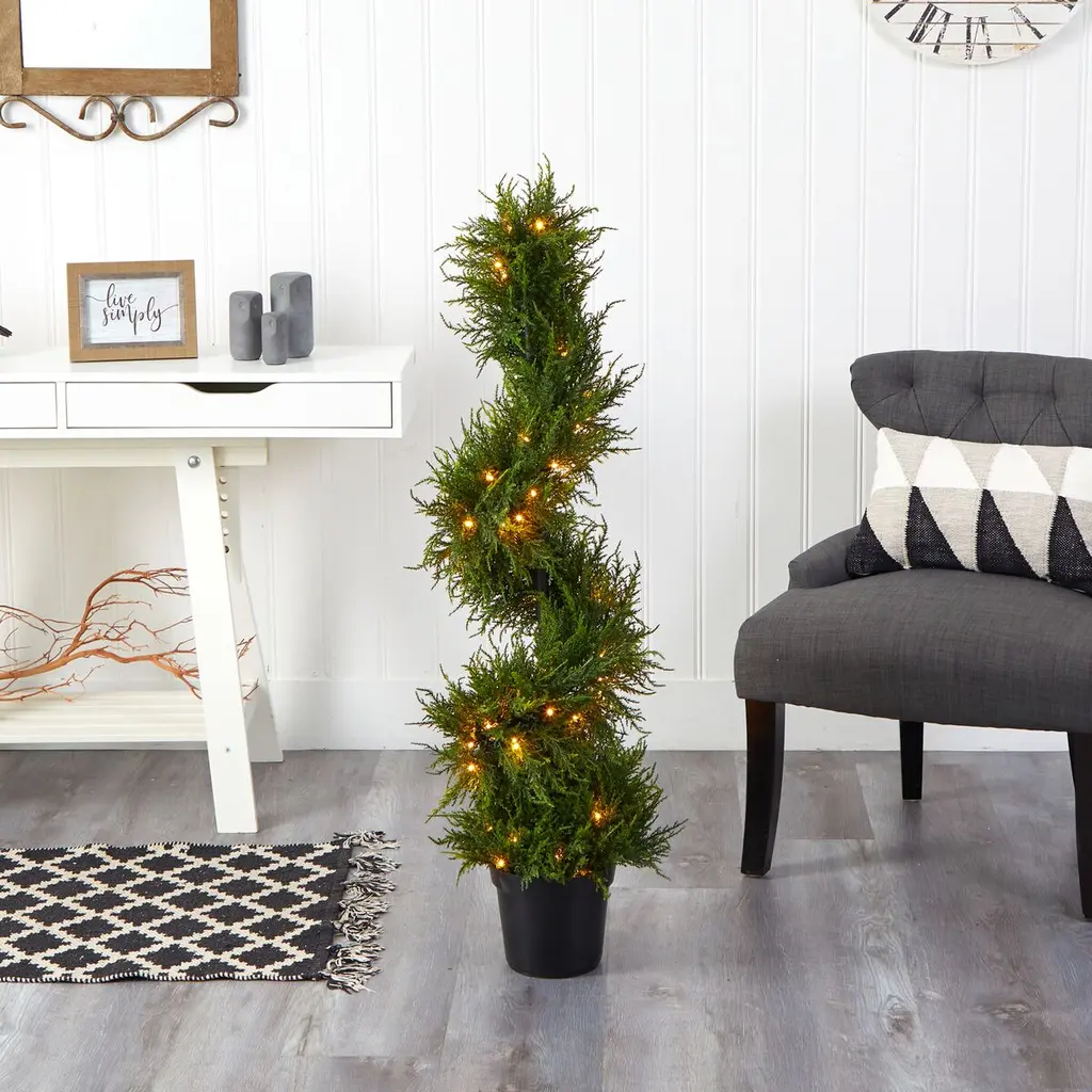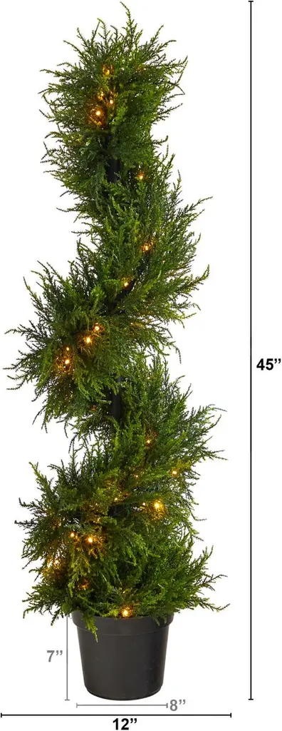 Suitable for use outdoors or in, this faux cypress tree is certain to brighten up your porch, patio, balcony, or entry, thanks to the 80 LED lights nestled among the lifelike fronds. Standing nearly four feet tall and shaped in a spiral, the tree will command attention even when the lights aren't illuminated.