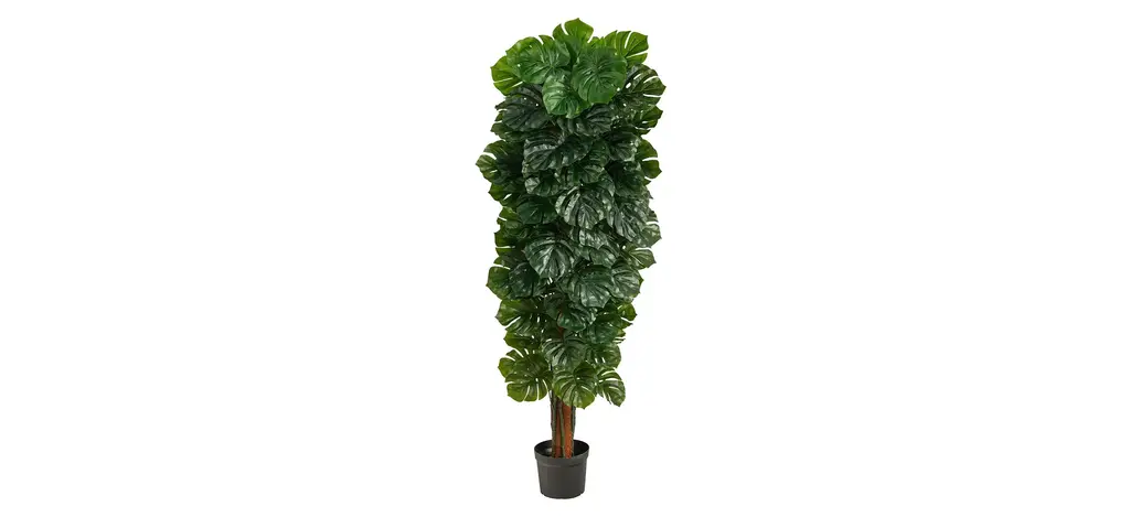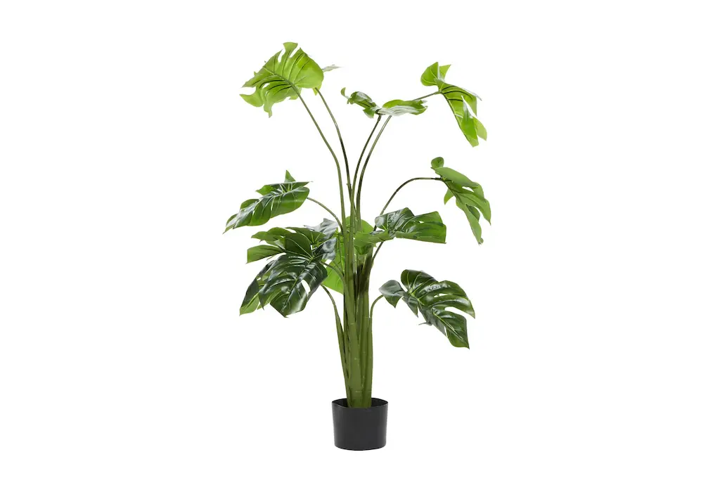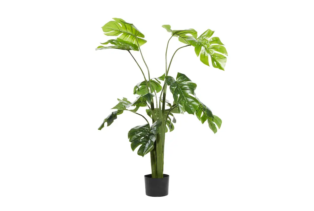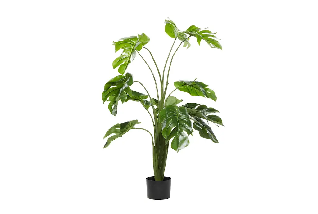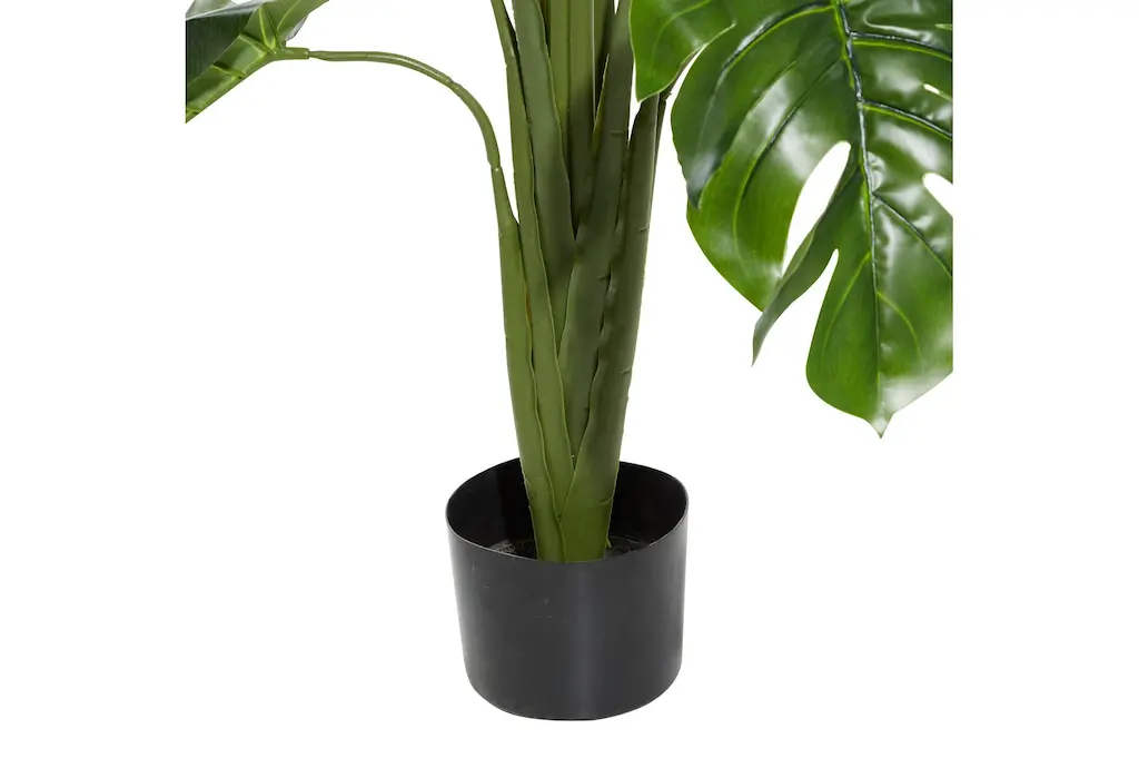 Use it as a centerpiece on the living room coffee table or a corner accent piece by the hallway console dresser. Add some greenery to your decor with no keep up effort with these artificial foliage. Monstera artificial plant complements other green decors and is perfect to place in any corner of the room. This item ships in 1 carton. Artificial monstera plant made of polyethylene in a cylindrical plastic container measuring 6"D x 5"H. Depending on the style of plant, firm to medium pressure will need to be applied to each leaf in order to enhance the shape. The leaves are adjustable and can be shaped to form the look you desire. Suitable for indoor use only. This item ships fully assembled in one piece. This is a single green colored fake plant. Traditional style.