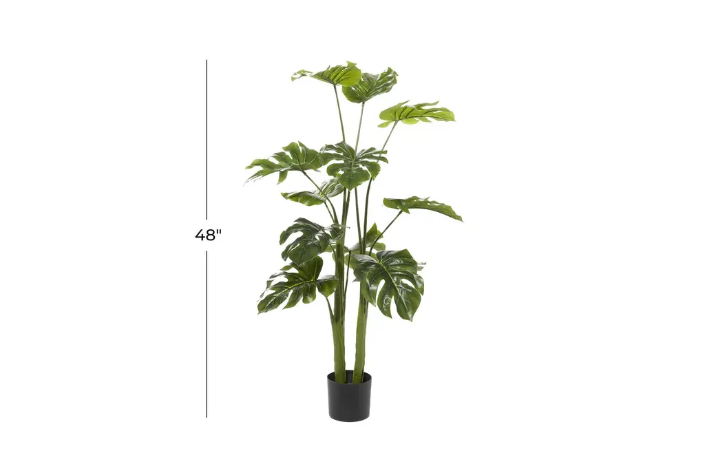48" Green Plastic Artificial Monstera Tree Rectangle