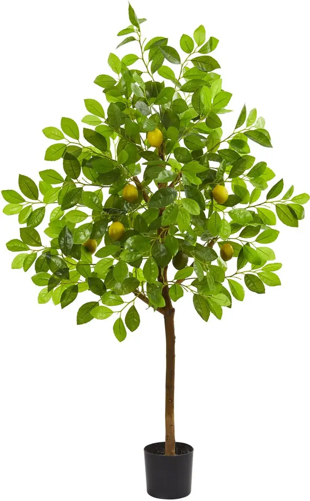 Lemon trees can bloom any time of year, and now you can enjoy their beauty any time as well, no matter where you live. Standing four feet tall, with faux lemons dangling among its lush leaves, this beautifully lifelike tree is certain to command attention.