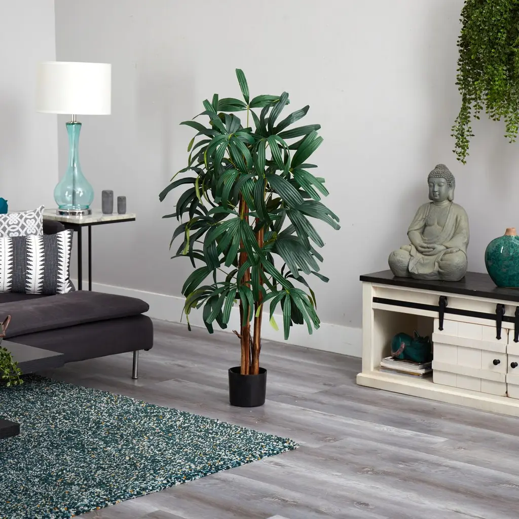 Also known as lady palms, rhapis palm trees are indigenous to Southeast Asia. This four-foot-tall faux tree, however, lets you enjoy their leafy beauty without leaving your home. With nearly 200 leaves, it's certain to command attention wherever you place it.