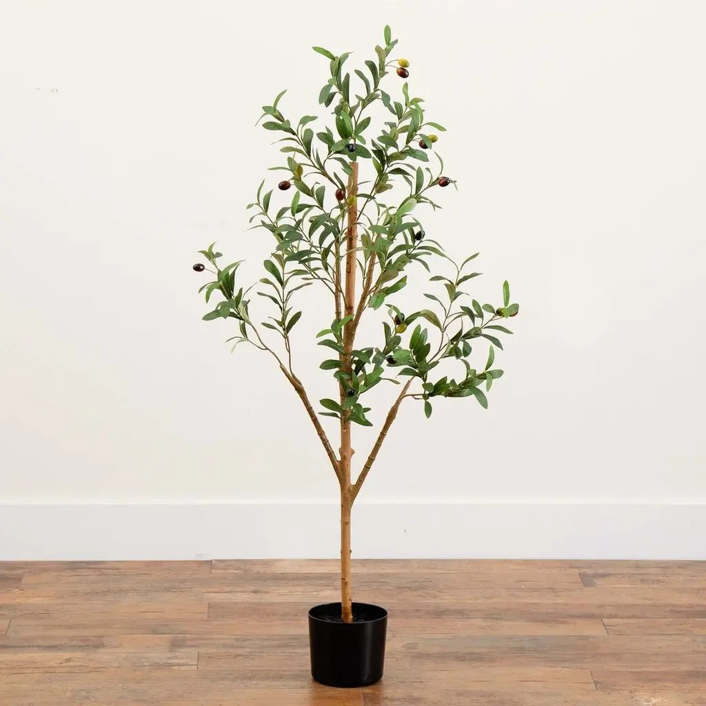 Bring a touch of Mediterranean elegance to your space with the faux olive tree, a piece that effortlessly combines timeless beauty and modern charm. This tree showcases a natural trunk and is adorned with leaves in a blend of light and dark green shades. Crafted from high-quality materials by seasoned horticulturists, the branches are designed to be bendable, allowing you to create a unique, personalized appearance. Accented with faux olives in various hues, it's a versatile addition to any decor style. Explore this tree in sizes ranging from mini to tall, perfect for any space in your home.