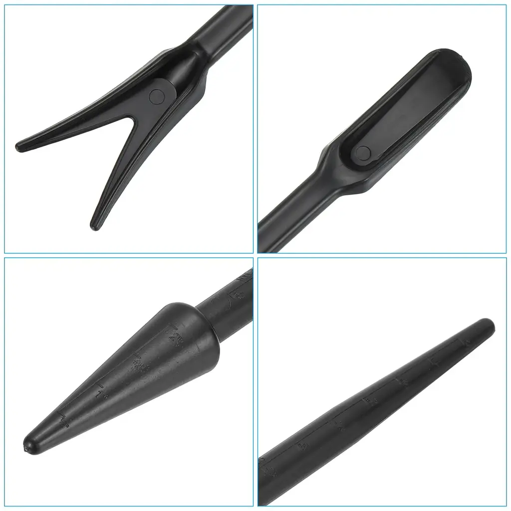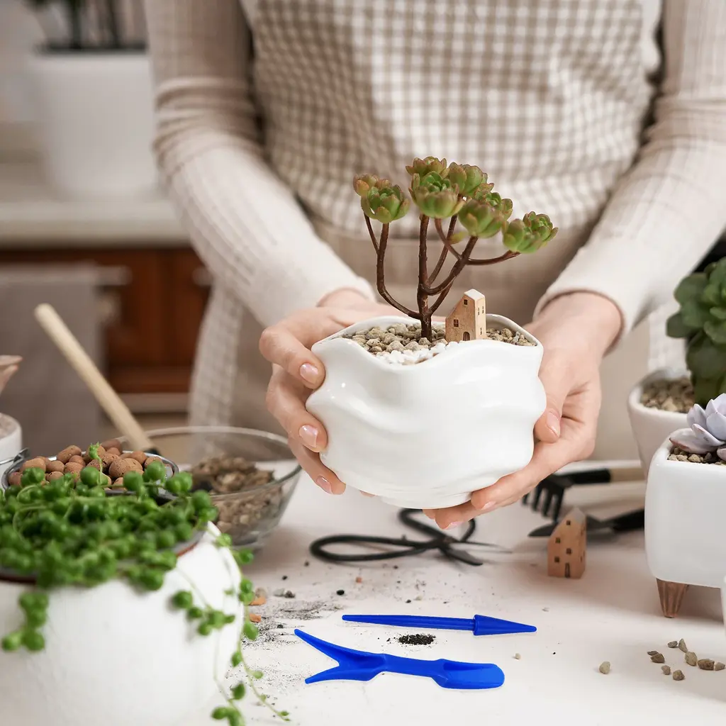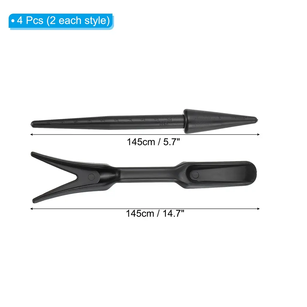 Succulent transplanting tools are tools designed specifically for transplanting for succulent plants. These tools make the process of handling succulents easier and more precise, minimizing the risk of damage to the plants.SpecificationColor: BlackMaterial: PPLength: 145mm / 5.7 inchPackage Content: 4 x Succulent Transplanting Tools(2pcs for each style)AdvantageThe transplanting puncher is used to create holes in the soil for planting. It allows for easier insertion of the plant's root ballThe serrated teeth on the shovel allow for effective cutting through roots, tough vegetation, or compacted soil. This makes it easier to dig into dense or hard surfaces, saving time and effort.This mini garden hand transplanter kit can help you perform most transplanting tasks well, such as digging holes, transplanting plant, loosening and spreading soil. Suitable for growing succulents, bonsai plants and garden vegetables.NotePlease confirm the size before placing an order.