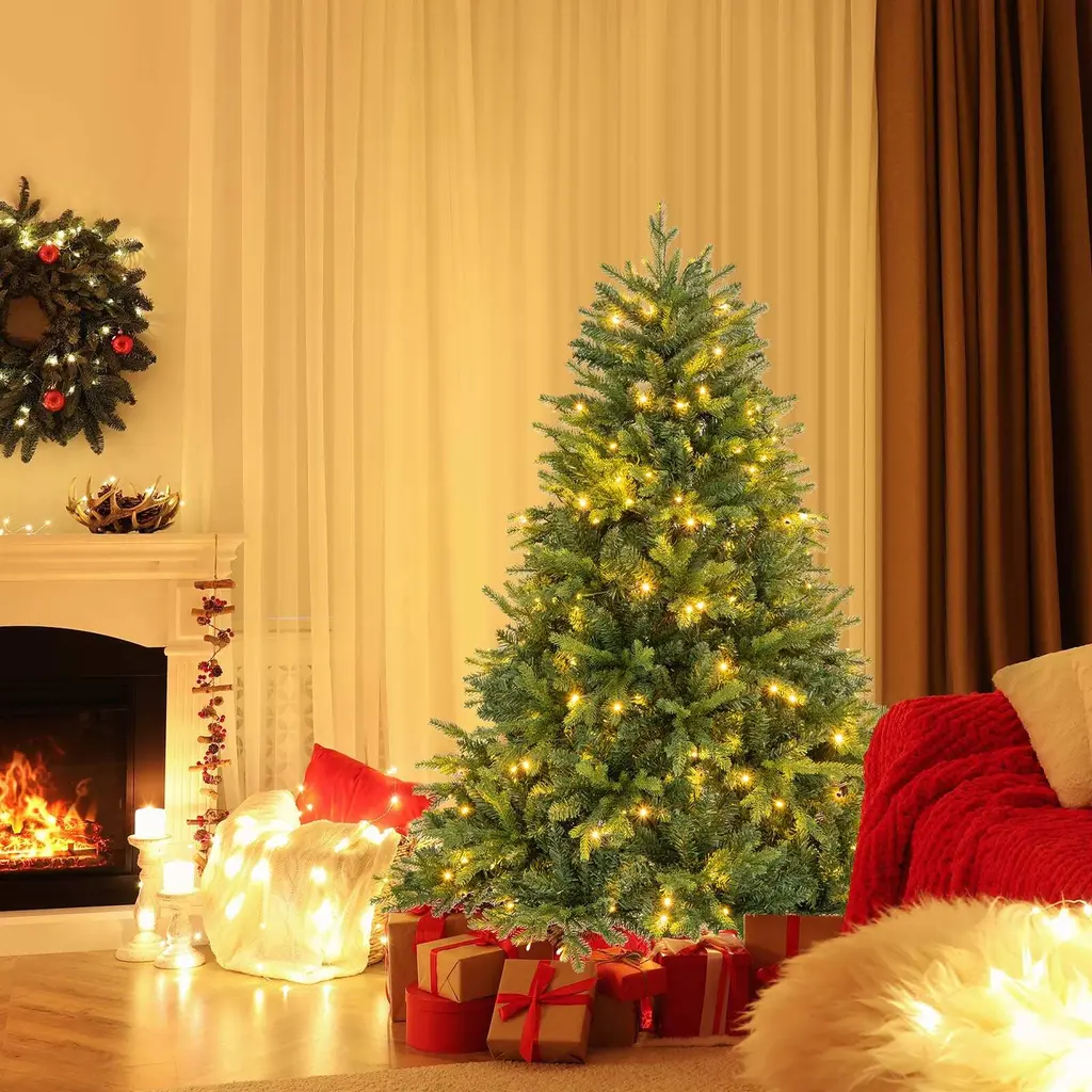 5/6/7 Feet Pre-Lit Artificial Christmas Tree With Branch Tips And Led Lights-5 Ft - 5 Foot