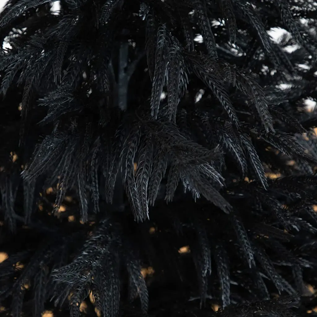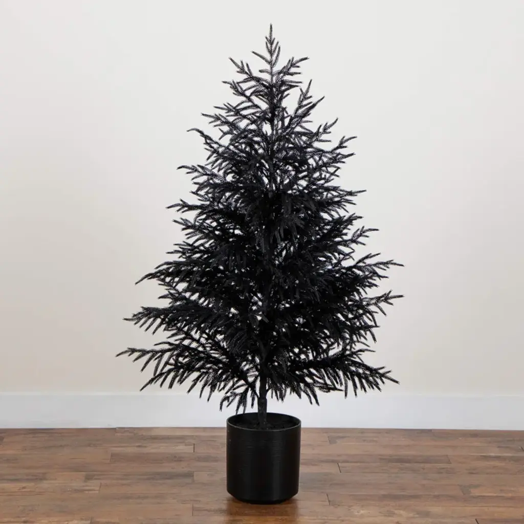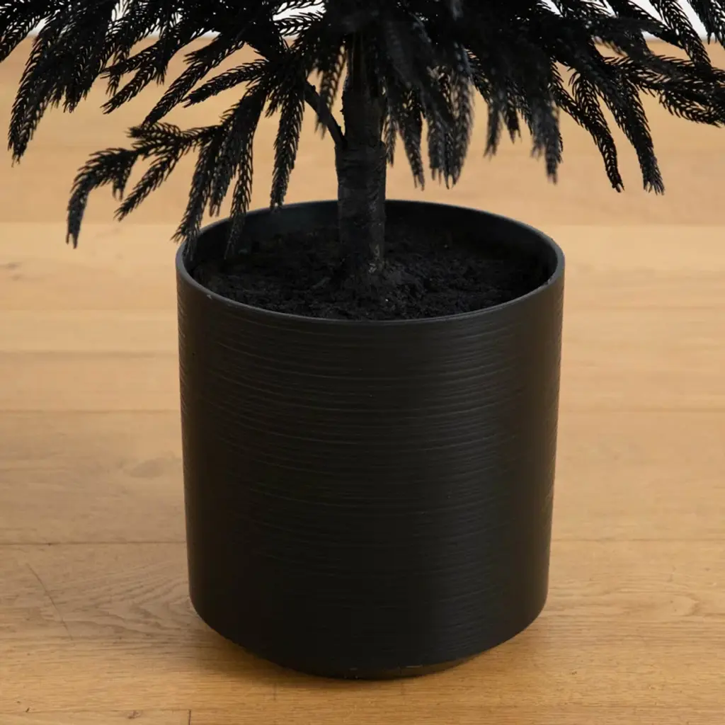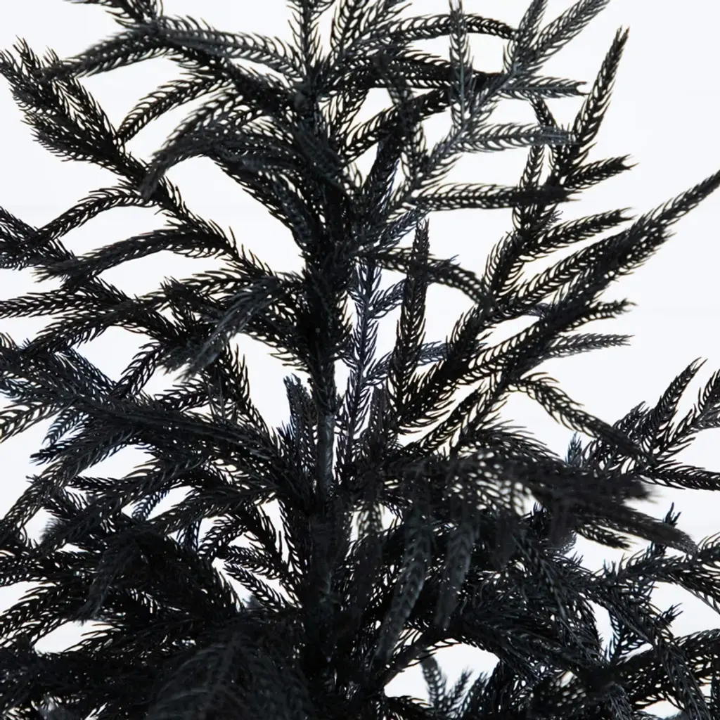 Ever wanted to take a trip through the forests during fall? Evoke the feeling with the artificial Halloween black Norfolk pine tree. Inspired by the forests in the Northeast, lifelike, droopy leaves are in a black finish for a touch of elegance and charm. Crafted from high-quality materials you'll notice the attention to detail with its natural look and real touch leaves. Bend the branches for a unique look. Standing 4-Ft from a nursery pot, display in a planter of your choice. Great for a living room, bedroom or bathroom during the harvest season.
