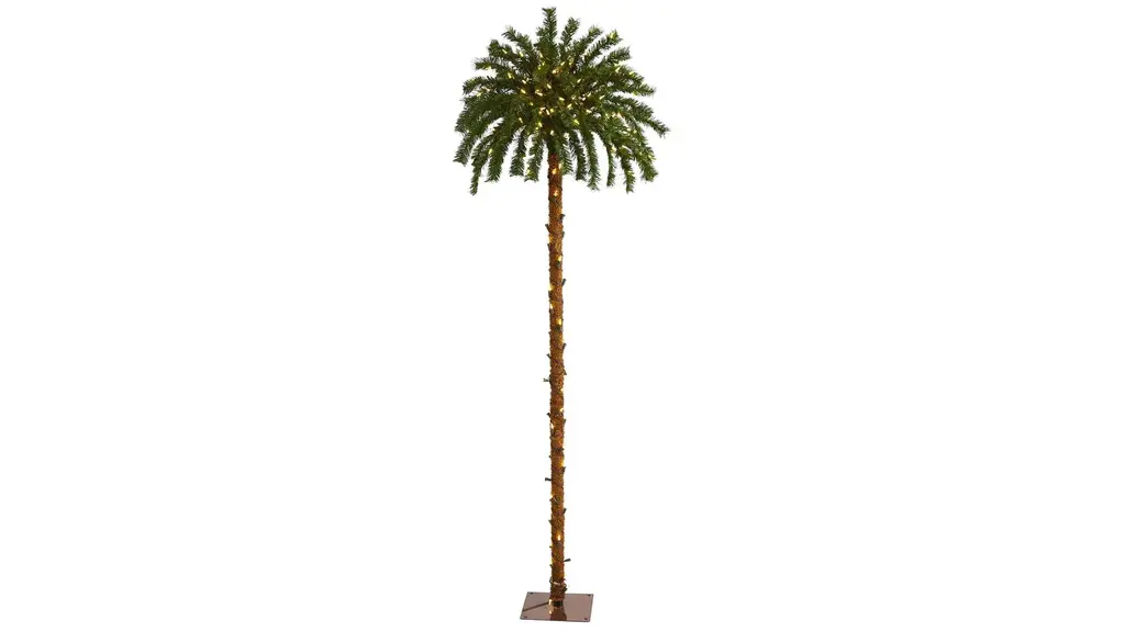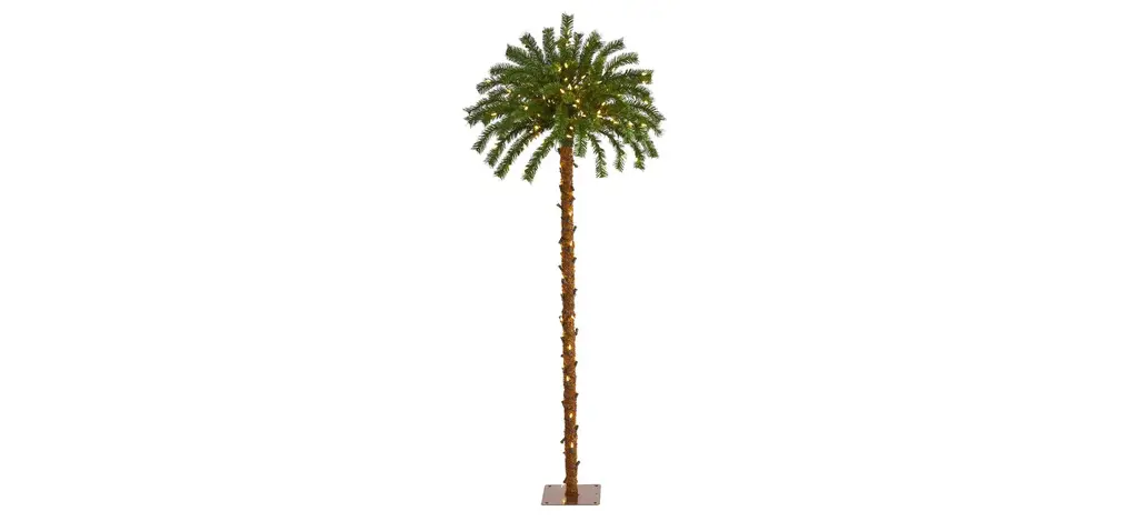 If you're looking to implement a little fun into your holiday Christmas decor why not opt for this festive artificial Christmas Palm Tree. Intricately designed to mimic the beauty of a realistic palm tree, this tropical-inspired artificial Christmas tree features 59 realistic looking tips, illuminated throughout with 150 clear, pre-strung LED lights to eliminate unsightly tangles. Carefully stabilized on a wooden pole and metal base, this 5' artificial Christmas palm tree will undoubtedly create a unique Christmas atmosphere all season long.