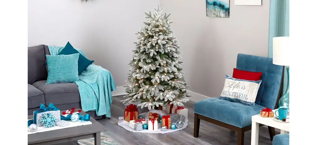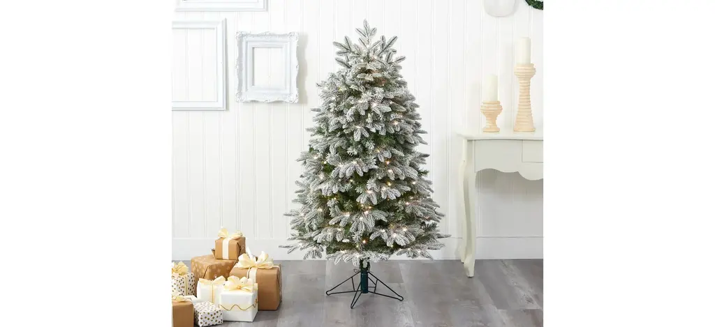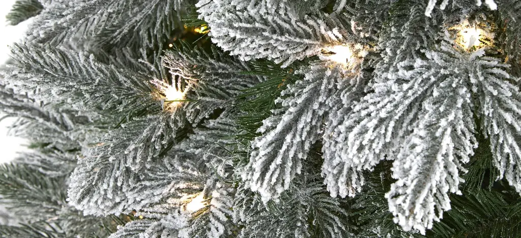 Evoke a winter-inspired Christmas this holiday with the help of this flocked artificial Christmas tree. Easy to build and entirely maintenance-free, it boasts a robust silhouette of seasonal evergreens, made up of 511 easy-to-bend branches for showcasing all your personalized ornaments - fully flocked with faux snow to create a picture-perfect setting. Arriving pre-strung with 300 clear LED lights, it also features 8 different light options (including Twinkle, Bursts, and Fade) to create a true holiday glow wherever displayed. Carefully stabilized on a metal stand, this enchanting 5' tall flocked artificial Christmas tree will undoubtedly be a focal point throughout the holidays, year after year.