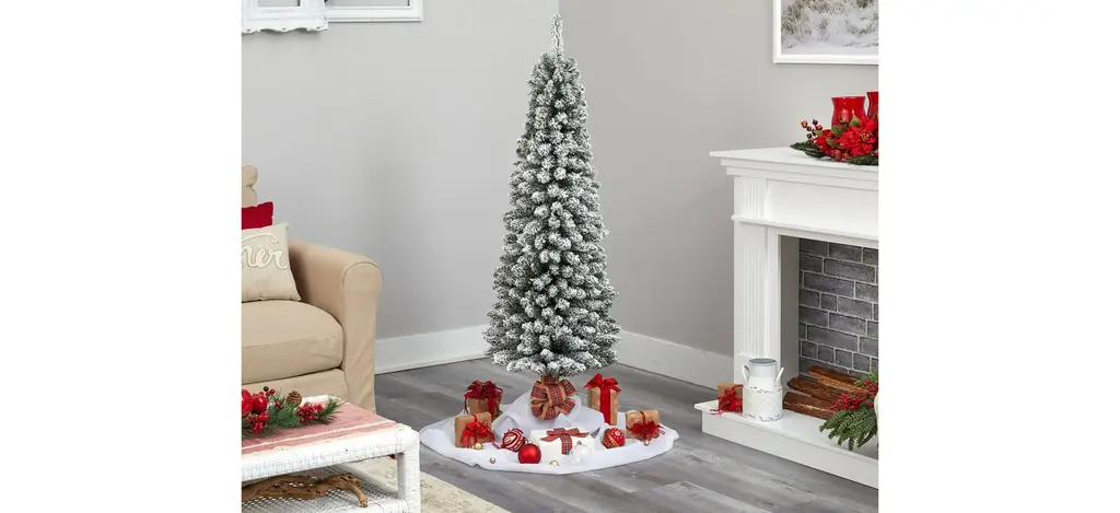 5Ft. Pre-Lit Flocked Pencil Artificial Christmas Tree