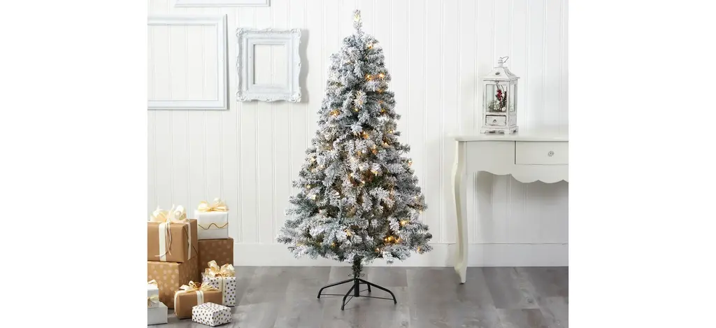 5Ft. Pre-Lit Flocked Rock Springs Spruce Artificial Christmas Tree