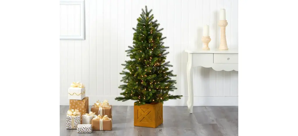 Set up a traditional Christmas scene in your home or office with the help of this artificial Christmas tree. Easy to set-up and entirely maintenance-free, this realistic looking artificial Christmas tree boasts a traditional silhouette of evergreen foliage, made up of 366 bendable branch tips, perfect for accenting with your own personalized ornaments. Arriving pre-strung with 250 clear LED lights, it also features 8 different light options (including Twinkle, Bursts, and Fade) to create a true holiday glow wherever displayed. Carefully stabilized in a decorative planter, this handsome 5' tall artificial Christmas tree will create a picture-perfect holiday setting, year after year.
