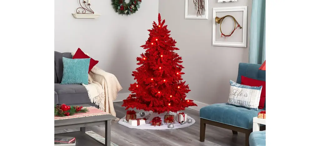 Create a one-of-a-kind Christmas this holiday with the help of this red flocked artificial Christmas tree. Easy and effortless, it boasts a traditional silhouette made up of 490 easy-to-bend branches for showcasing all your personalized ornaments - all flocked in a bold red hue to help evoke a very, merry holiday setting. Arriving pre-strung with 250 red colored lights and 26 globe bulbs to eliminate tangles and carefully stabilized on a metal stand, this vibrant 5' tall flocked artificial Christmas tree will undoubtedly be a cheerful focal point throughout the holidays, year after year.