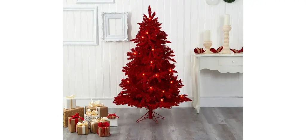 5Ft. Pre-Lit Red Flocked Fraser Fir Artificial Christmas Tree