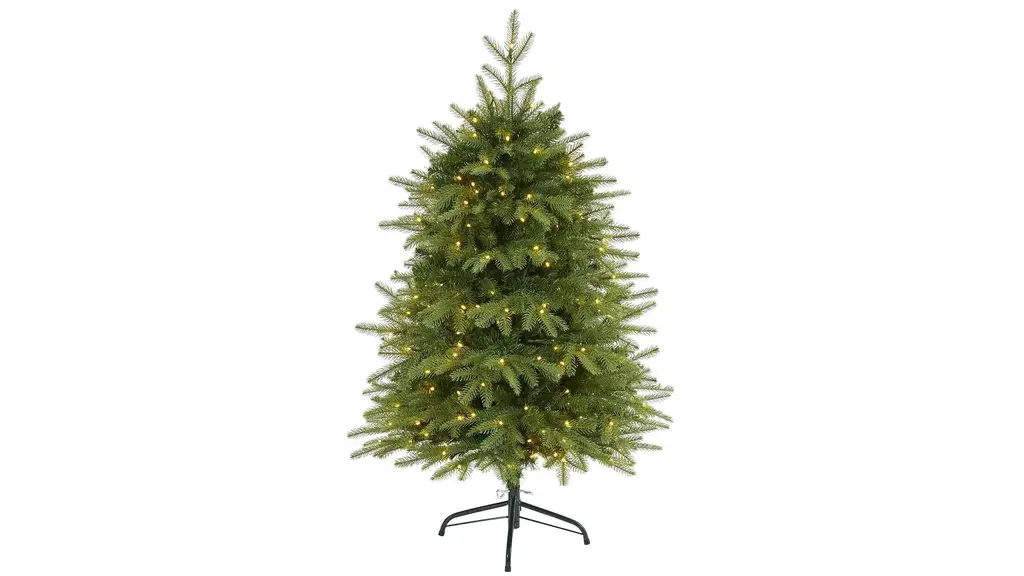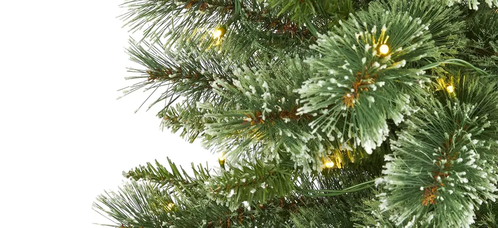 Create the ultimate holiday scene in your home or office with the help of this evergreen 5' pre-lit Wisconsin slim snow tip pine artificial Christmas tree. Entirely maintenance-free, this realistic looking Christmas tree boasts a rich collection of pine foliage made up of 298 easy-to-bend branches to hang all of your favorite holiday ornaments. Arriving pre-strung with 150 clear LED lights to eliminate tangles and stabilized on a metal stand, this versatile 5' tall Christmas tree will not only make holiday decorating a breeze but ensure your home is always holiday-dressed for years to come.
