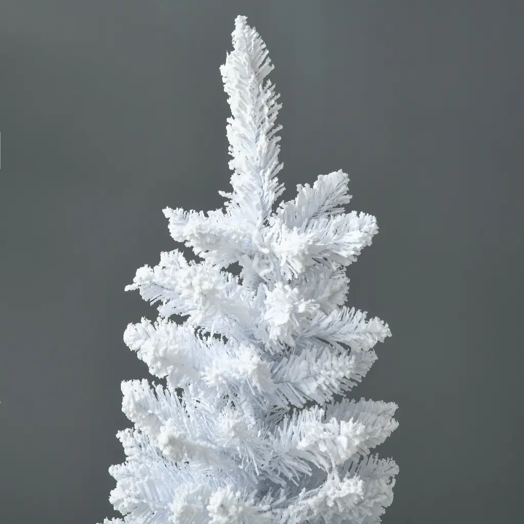 5Ft Snow Flocked Artificial Pencil Christmas Tree, Slim Xmas Tree With Realistic Branches And Plastic Base - White