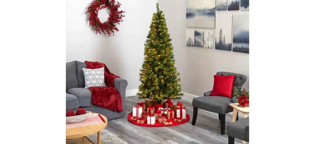 Get your home into the Christmas spirit this season with the help of this artificial Christmas tree. Easy to set-up and entirely maintenance-free, this realistic looking artificial Christmas tree boasts a slender silhouette of seasonal foliage, made up of 579 bendable branch tips, perfect for accenting with all your favorite holiday ornaments. Arriving pre-strung with 300 clear LED lights and carefully stabilized on a metal stand, this versatile 6.5' tall artificial Christmas tree will create a picture-perfect holiday setting, year after year.