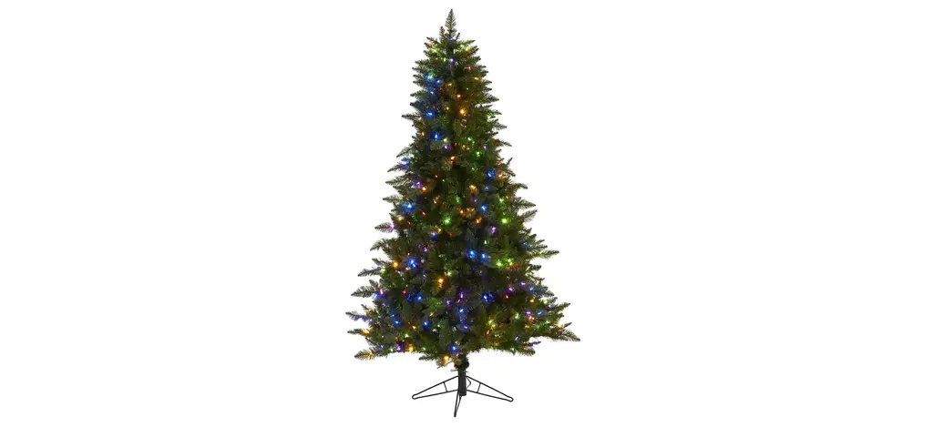 Light up your home this holiday season with the help of this artificial Christmas tree. Easy to build and entirely maintenance-free, it boasts a traditional silhouette of seasonal evergreens, made up of 984 easy-to-bend branches, perfect for showcasing all your favorite holiday ornaments. Arriving pre-strung with 450 color-changing LED lights, it also features 8 different light options (including Twinkle, Bursts, and Fade) to create a true holiday glow wherever displayed. Carefully stabilized on a metal stand, this festive 6.5' tall artificial Christmas tree will undoubtedly be a focal point throughout the holidays, year after year.