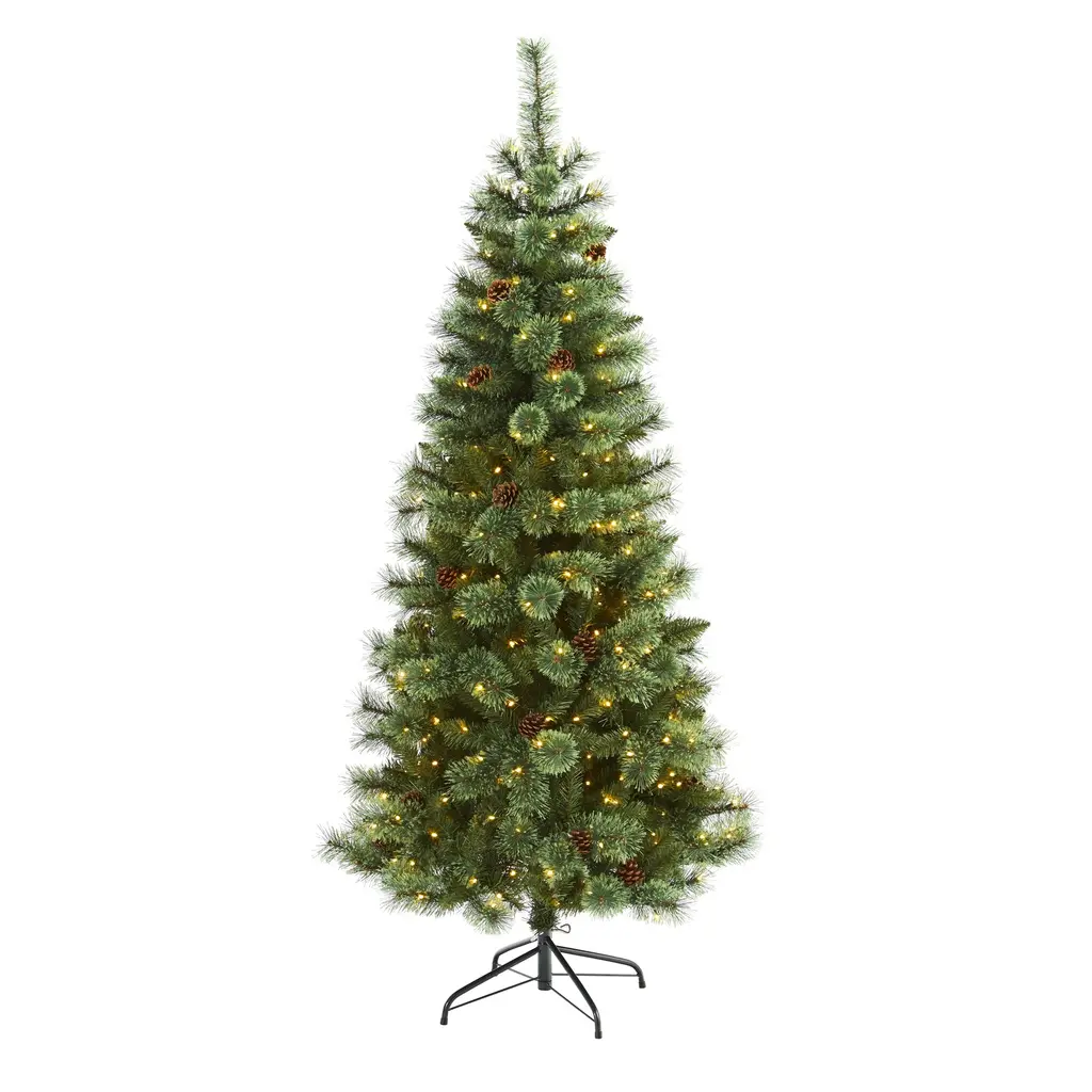 Description:Create the ultimate holiday scene in your home or office with the help of this evergreen artificial Christmas tree; entirely maintenance-free, this realistic looking fake tree boasts a rich collection of pine foliage (323 tips to accent with your holiday ornaments.), handsomely accented throughout with faux pinecones that look incredibly lifelike. Arriving pre-strung with 300 lights to eliminate tangles and stabilized on a metal stand, this 6 ft. tall Christmas tree will not only make holiday decorating a breeze but ensure your home is always holiday-dressed for years to come. About Nearly Natural Inc. - for over 75-years, Nearly Natural Inc. has been providing conscientious consumers with beautiful alternatives to natural decorations. Employing and advised by naturalists who understand the live plant world, Nearly Natural is able to recreate the most realistic-looking decorative items for homes, offices and businesses. Driven by a true commitment to customer service, attention to detail and natural philosophy, Nearly Natural strives to bring customers the most beautiful, unique and striking faux plants and floral on the market.Key Features:
