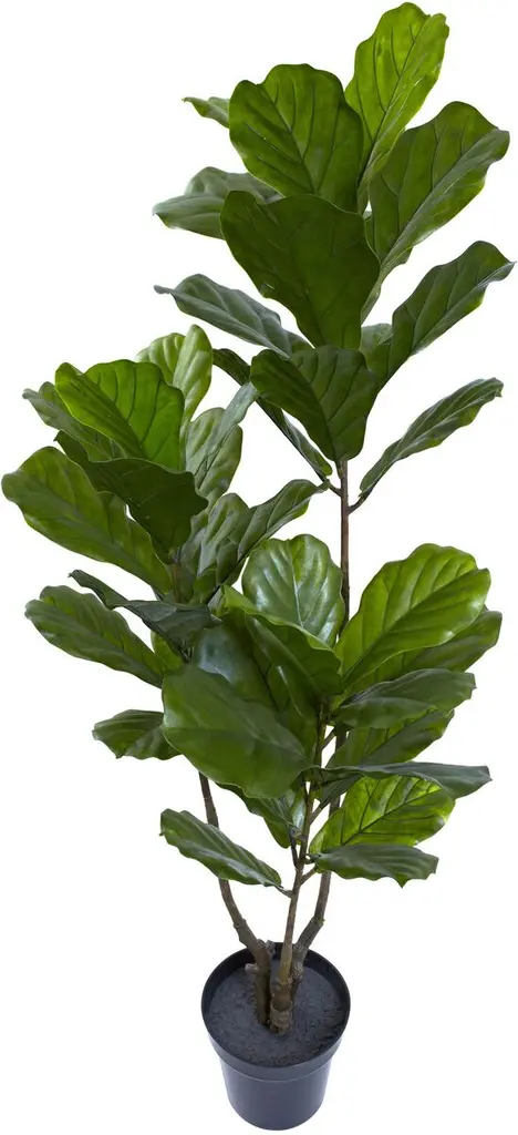 Three trunks, the tallest of which stands more than five feet high, add to the lifelike appearance of this faux fiddle-leaf fig. And while fiddle-leaf figs can be temperamental, this one is guaranteed to maintain its glossy green leaves and lush good looks with no effort on your part. What's more, because it's UV resistant, you can place it outdoors as well as in.
