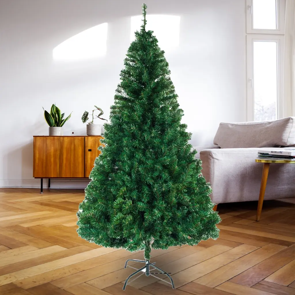 Introductions: If you are choosing a suitable tree for Christmas, you can take this 6ft 1050 Branch Christmas Tree into consideration. This tree is made of high quality materials. The leaves is adopt environmentally friendly and flame retarded PVC material, which is durable and not easily deformed. It also uses iron pipe and iron wire, so that it's stable and reliable. With fine workmanship and high quality material, it is worth buying, so get this Christmas tree home and dress up!Features: 1. More tips - 1050 branches are elaborated with to show the vivid full-blown pine tree 2. More realistic - The blades of Christmas tree are made from high quality PVC material, it shows more real and more nature 3. Sturdy and durability - Metal tree base with 3 screws provides stability to keep your tree standing more stable 4. Easy setup - To finish the assembly of this tree it requires only 3 steps, after putting branches and metal stand together, all the tree requires you to do is straighten out the branches 5. Warranty 100% - We offer you prime satisfaction customer service to guarantee to let you buy with confidence Specifications: 1. Color: Green 2. Material: PVC & Iron Pipe & Iron Wire 3. Weight: 169.32oz / 4800g 4. Dimensions: (31.50 x 31.50 x 70.87)" / (80 x 80 x 180)cm (L x W x H) 5. Branch: 1050Package Includes: 1 x Christmas Tree
